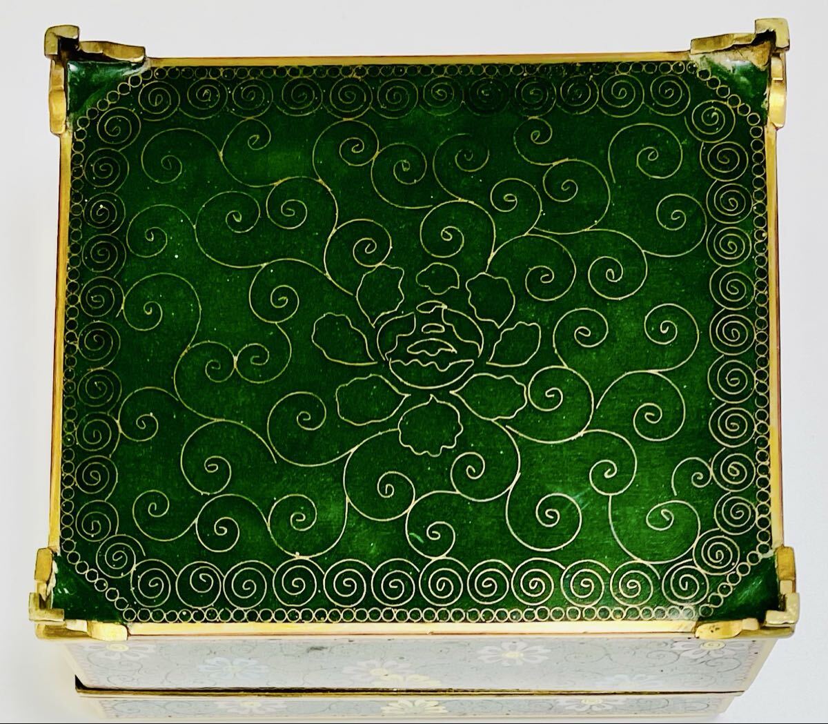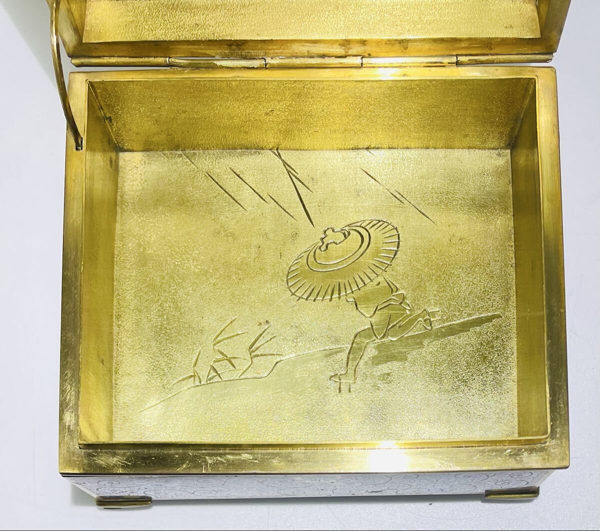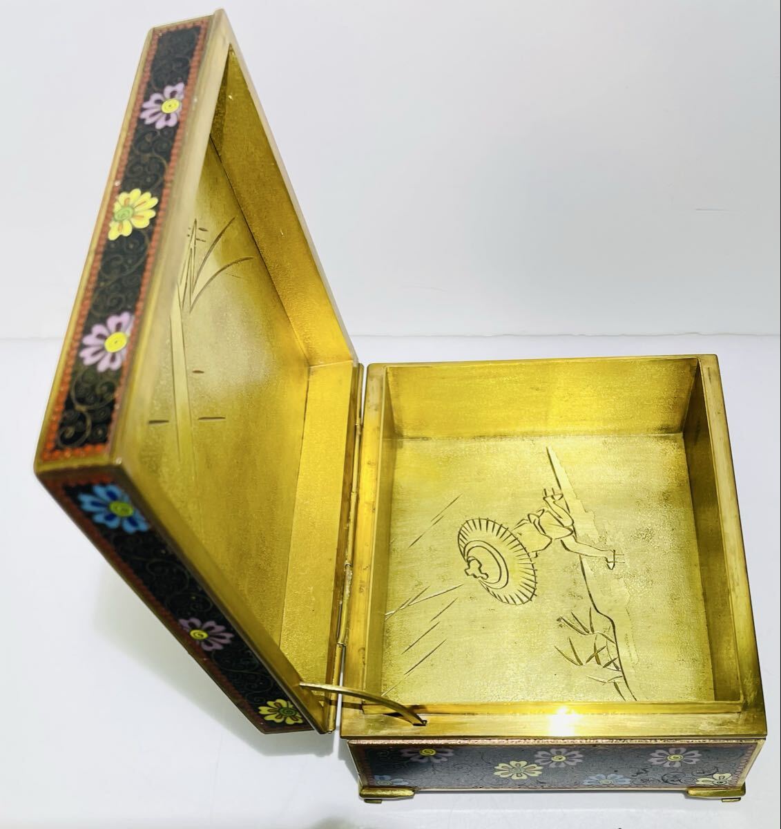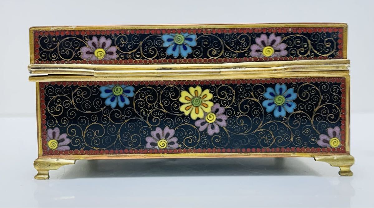 希少 七宝花鳥紋小物入れ 外観 花鳥図 内金 稲妻と夕立景 七宝工芸品 アンティーク 古美術品 古物