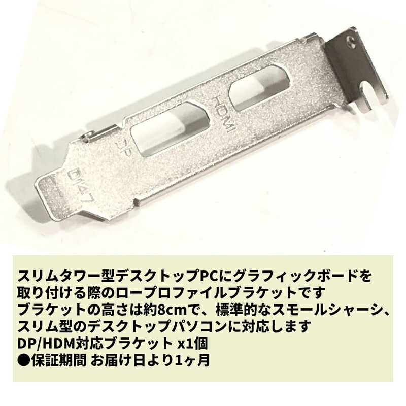 スリムタワー型デスクトップPCにグラフィックボードを取り付ける際のロープロファイルブラケットですブラケットの高さは約8cmで、標準的なスモールシャーシ、スリム型のデスクトップパソコンに対応します
