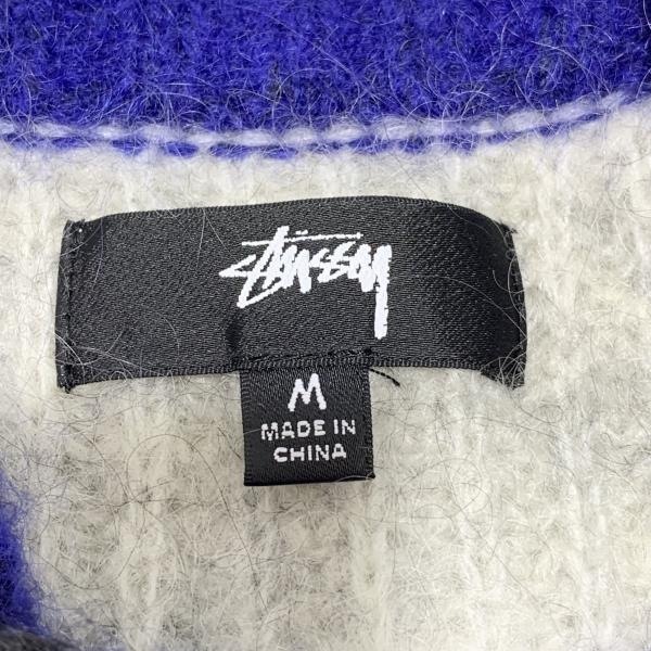 | 209999092678)STUSSY Mohair Tennis Vネックセーター サイズM グレー/ブルー 117142 ステューシー |