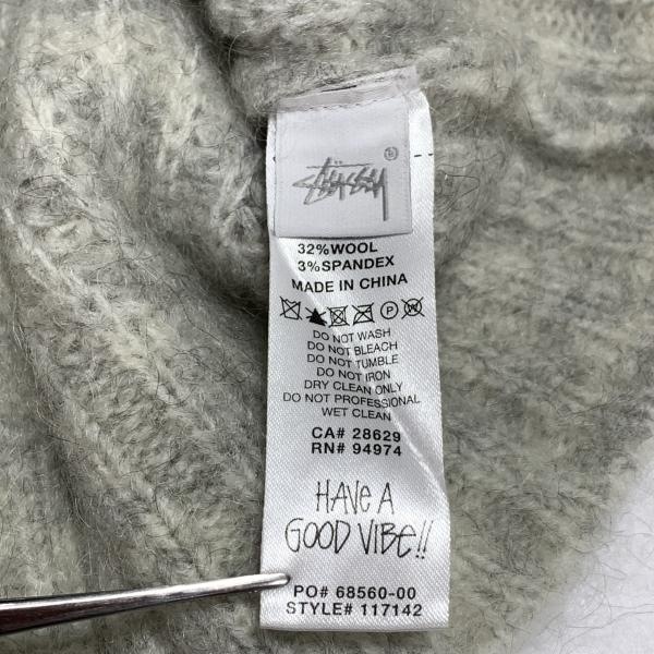 | 209999092678)STUSSY Mohair Tennis Vネックセーター サイズM グレー/ブルー 117142 ステューシー |