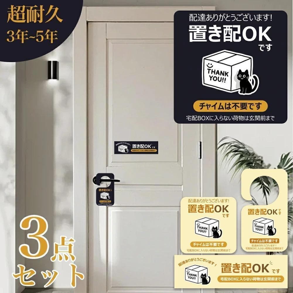 【高耐久で高コスパ!スマートな置き配対策】置き配ステッカー プレート 3点セット マグネット 特殊UV加工 防水 高耐候性 置き配ボックス 宅配ボックス 置き配OK チャイム不要 不在時 玄関前に 屋外