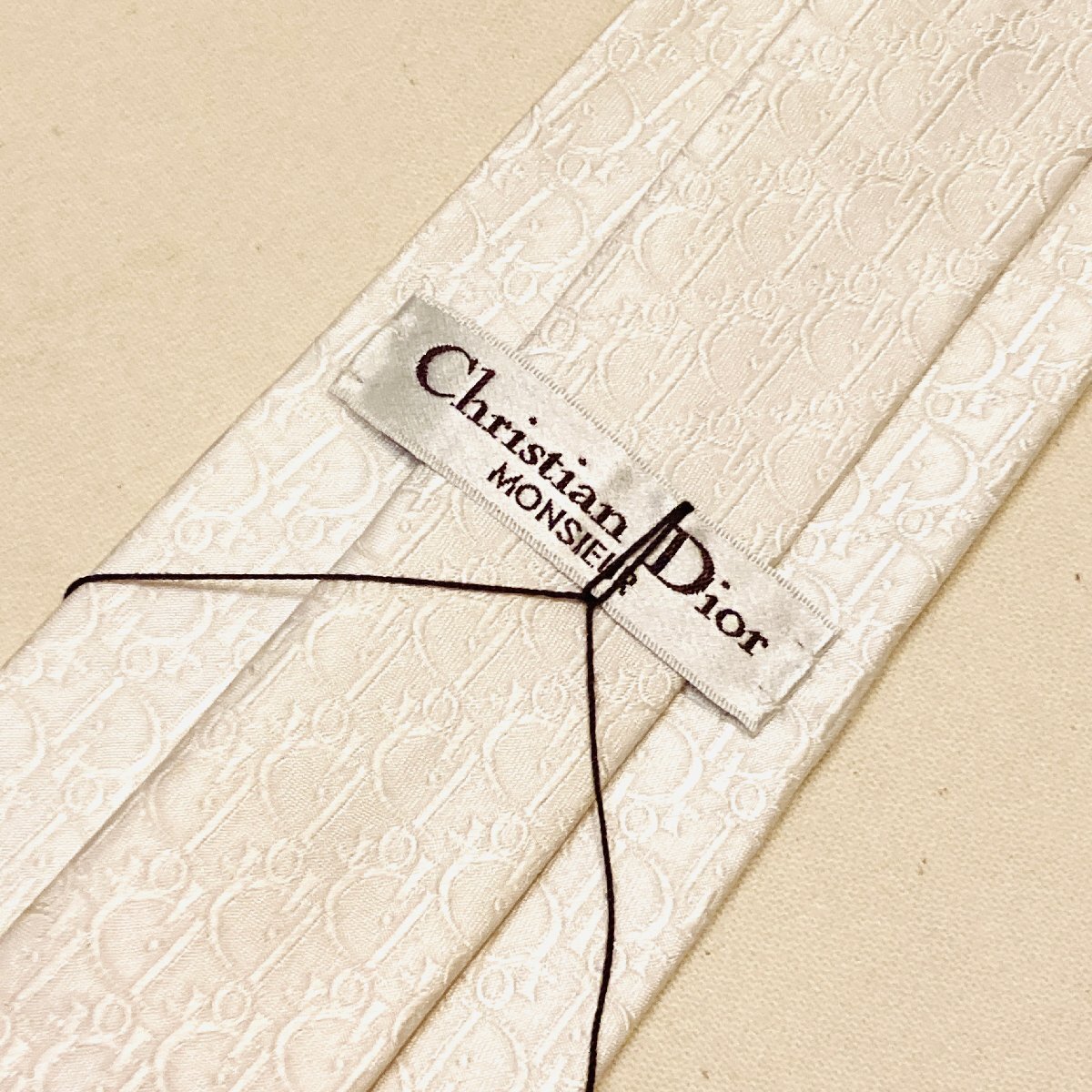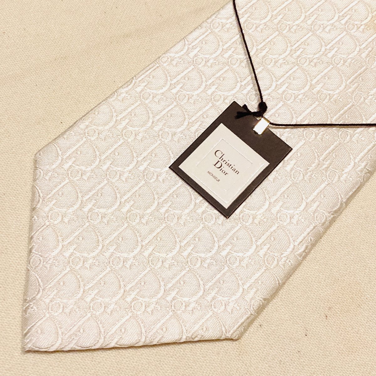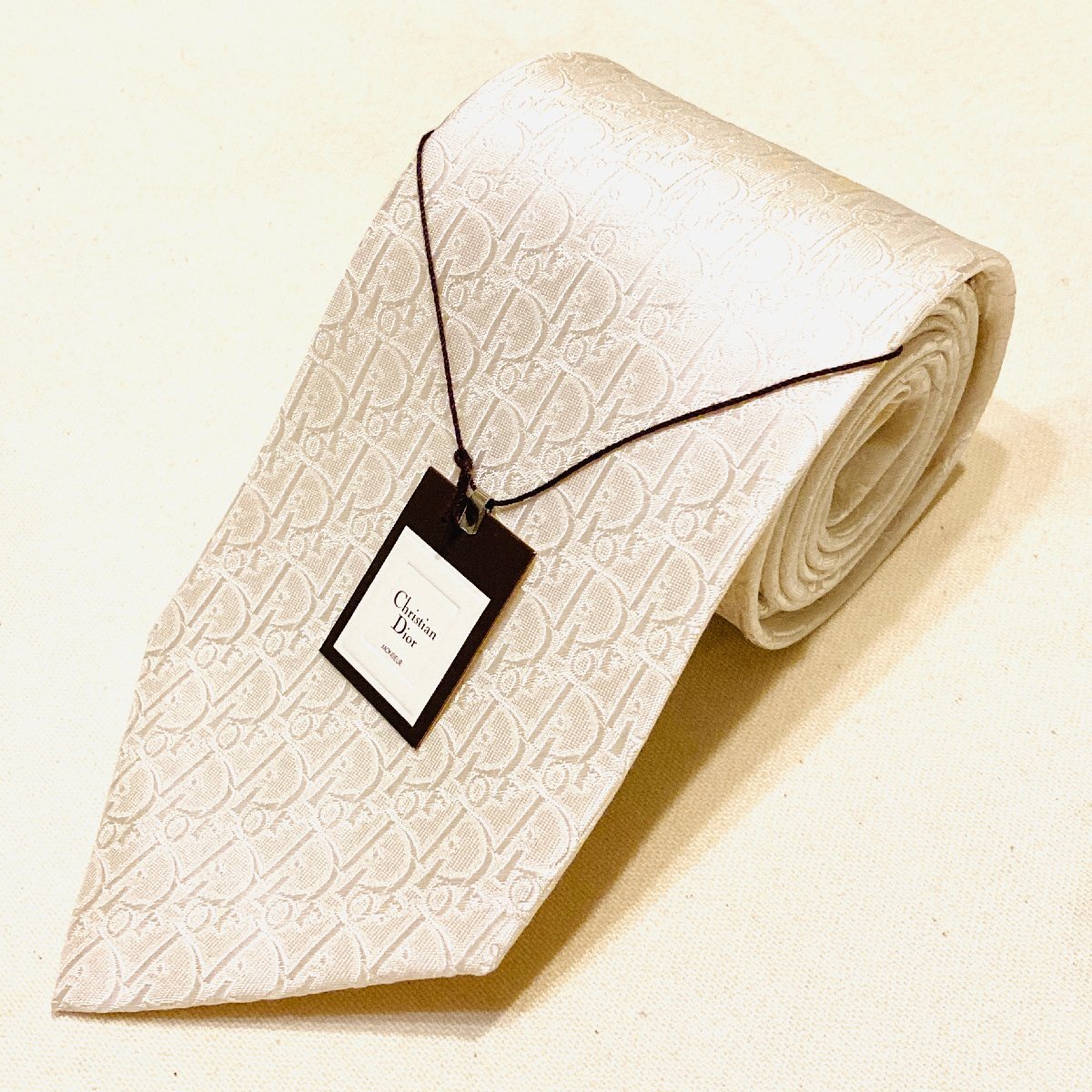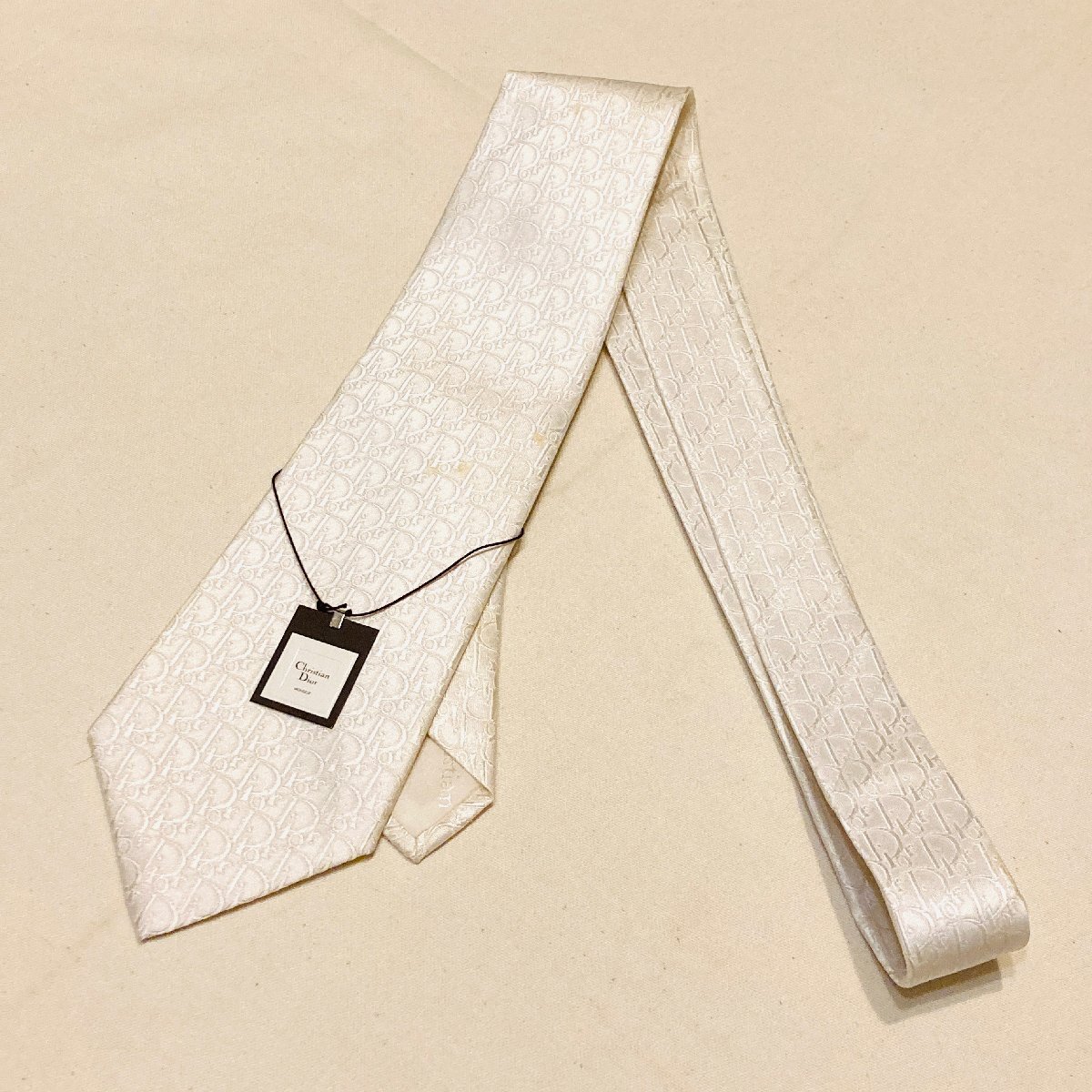 未使用 タグ付き Christian Dior MONSIEUR クリスチャンディオール 絹 シルク SILK 100% 高級 ネクタイ ホワイト ロゴ デザイン