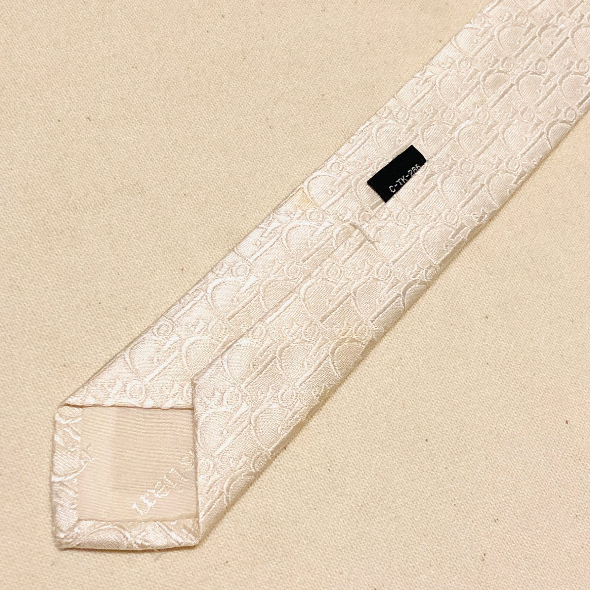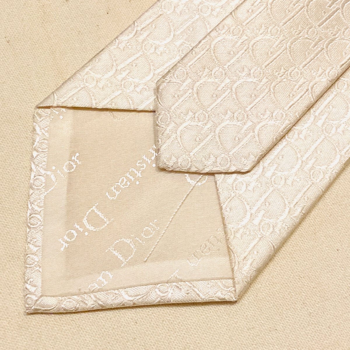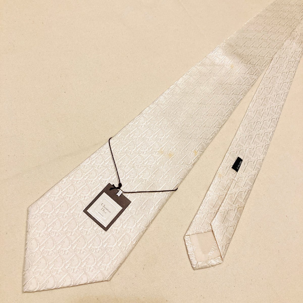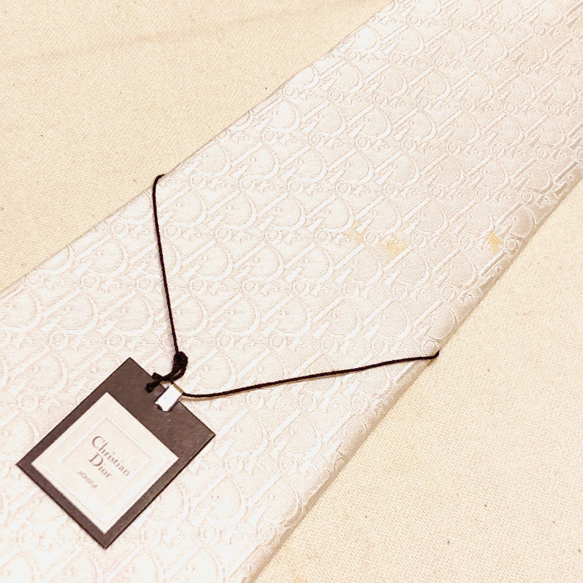 未使用 タグ付き Christian Dior MONSIEUR クリスチャンディオール 絹 シルク SILK 100% 高級 ネクタイ ホワイト ロゴ デザイン