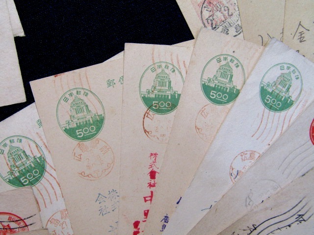 | 【蔵】消印 小判はがき 楠公はがき 稲束はがき 議事堂はがき 検閲済印 鉄郵 その他 丸一型/櫛型印 計61枚★ | |||