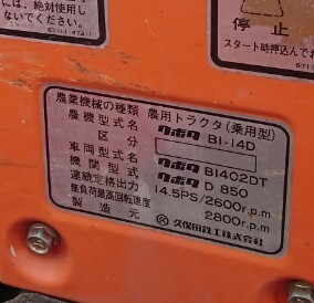 クボタ 3気筒 ディーゼル機関 14.5馬力
