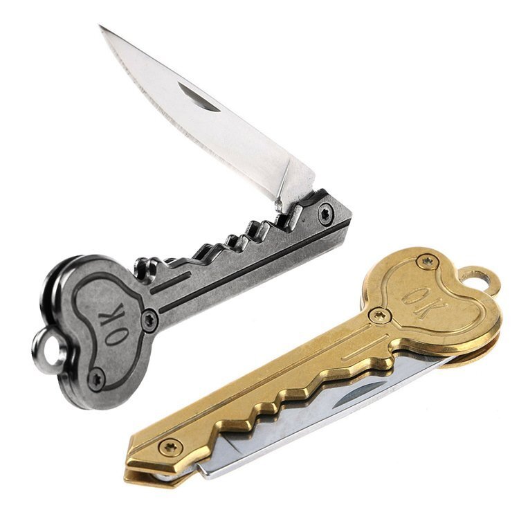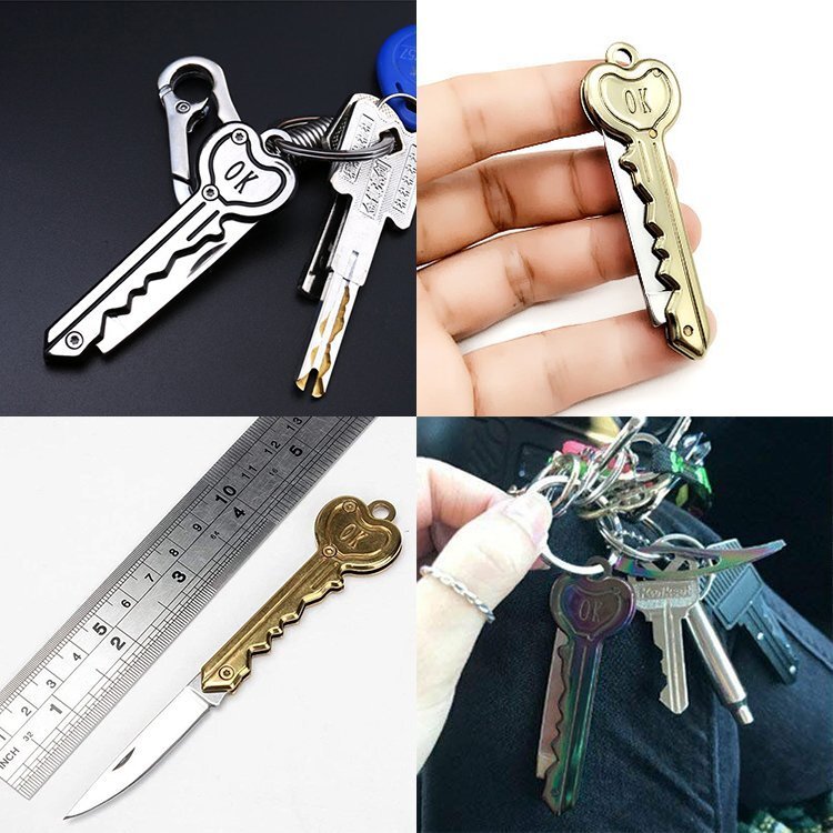 車のキーやストラップなどに取り付けて手軽に携帯できる、ミニサイズのキー型折畳みナイフです。