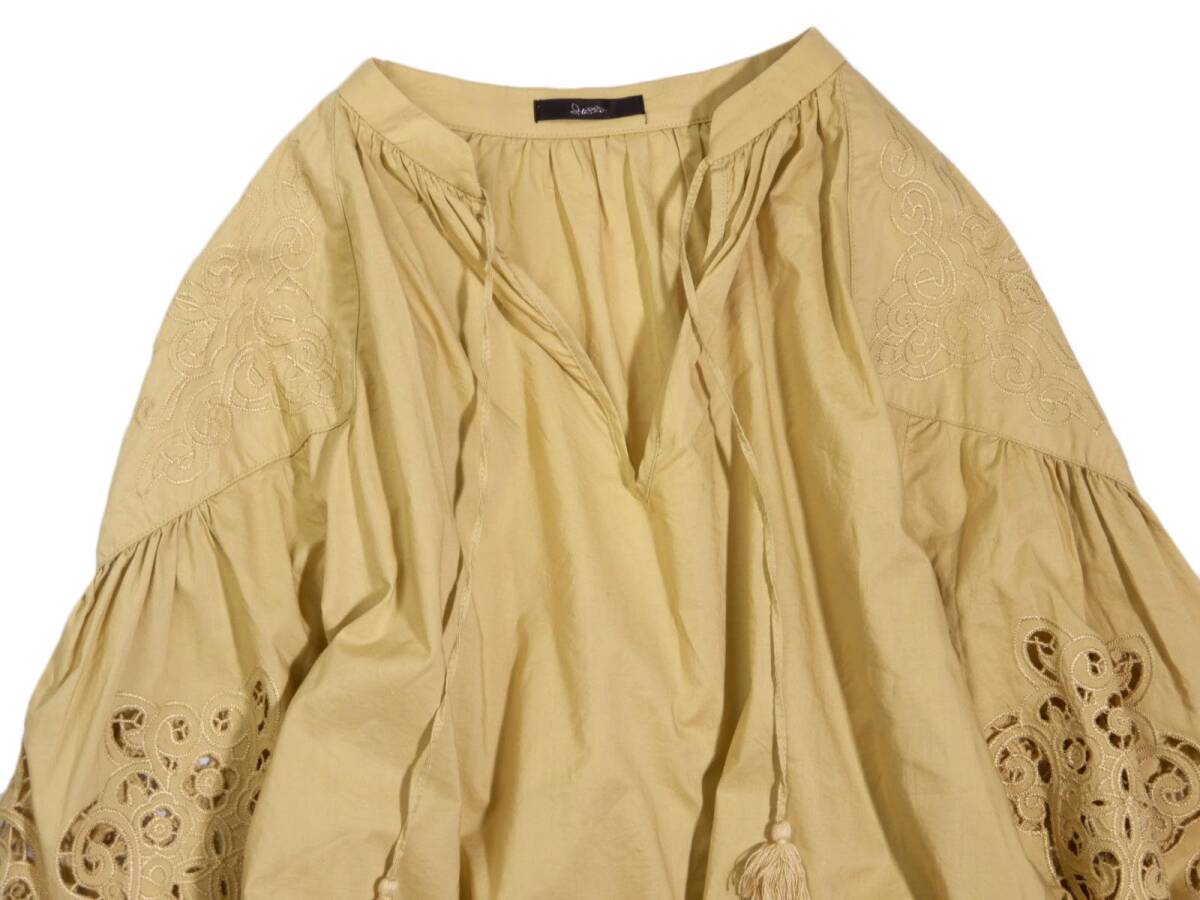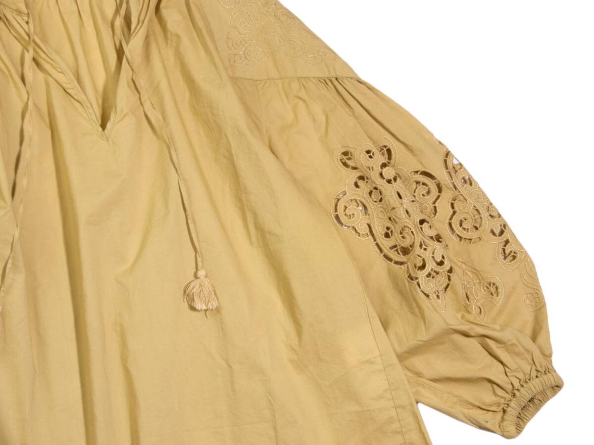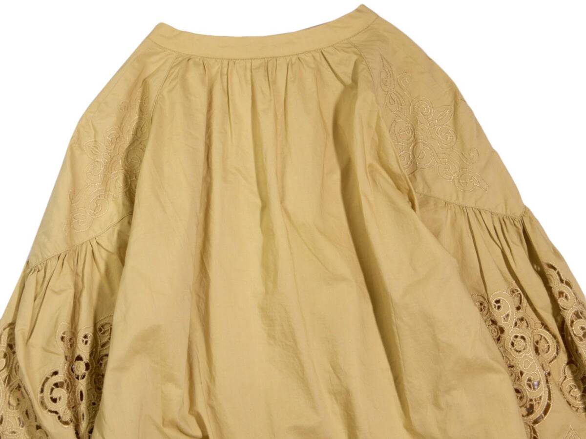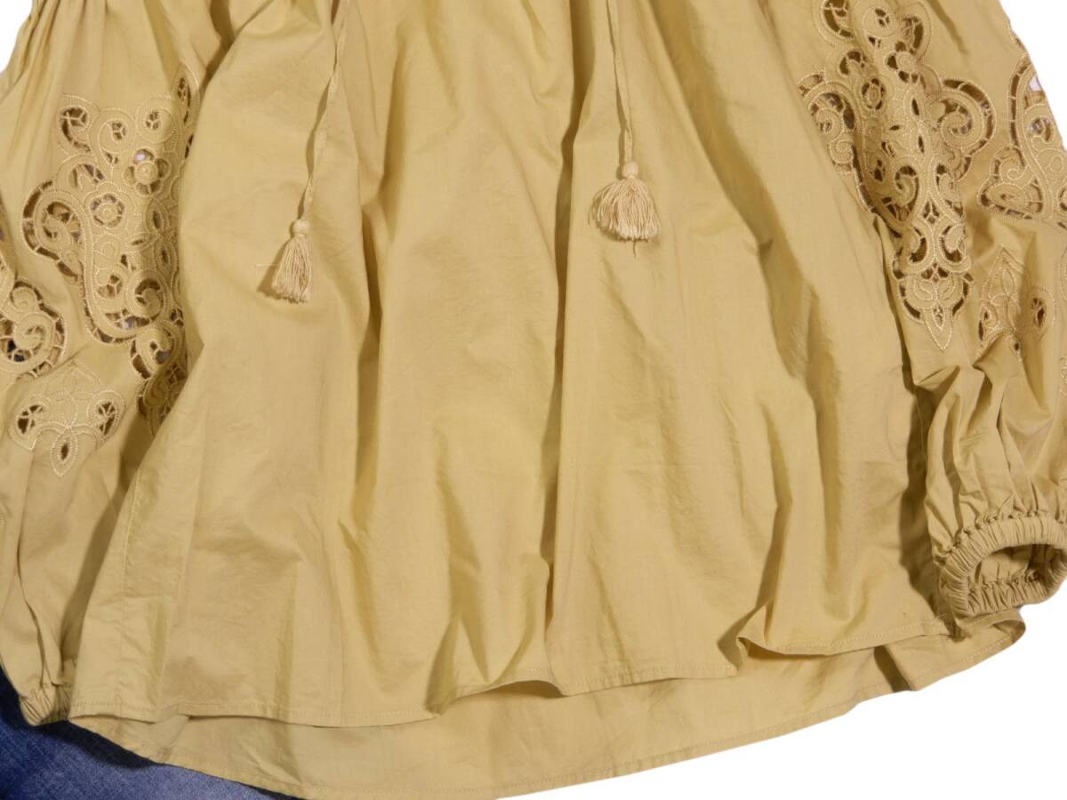 柔らかなコットン生地に、繊細な刺繍レースデザインをあしらった1枚。ゆったりめのシルエットでボリュームプルオーバータイプ。春夏シーズンに映える上品なアイテムです。