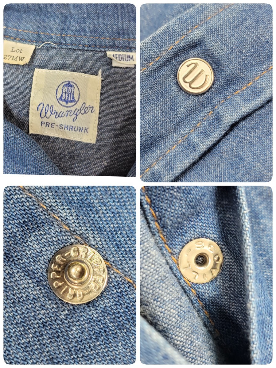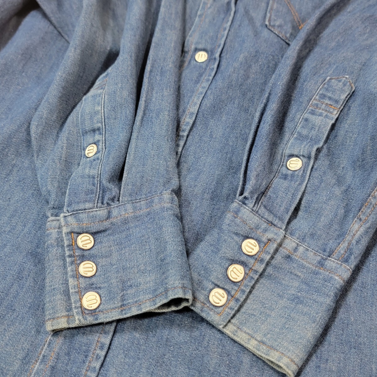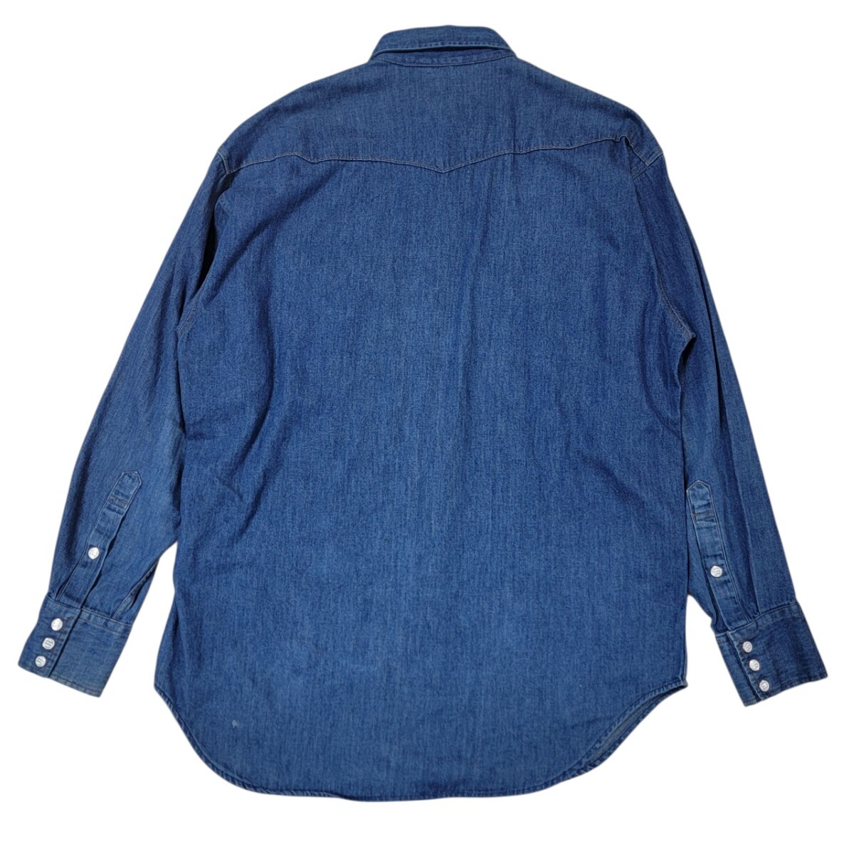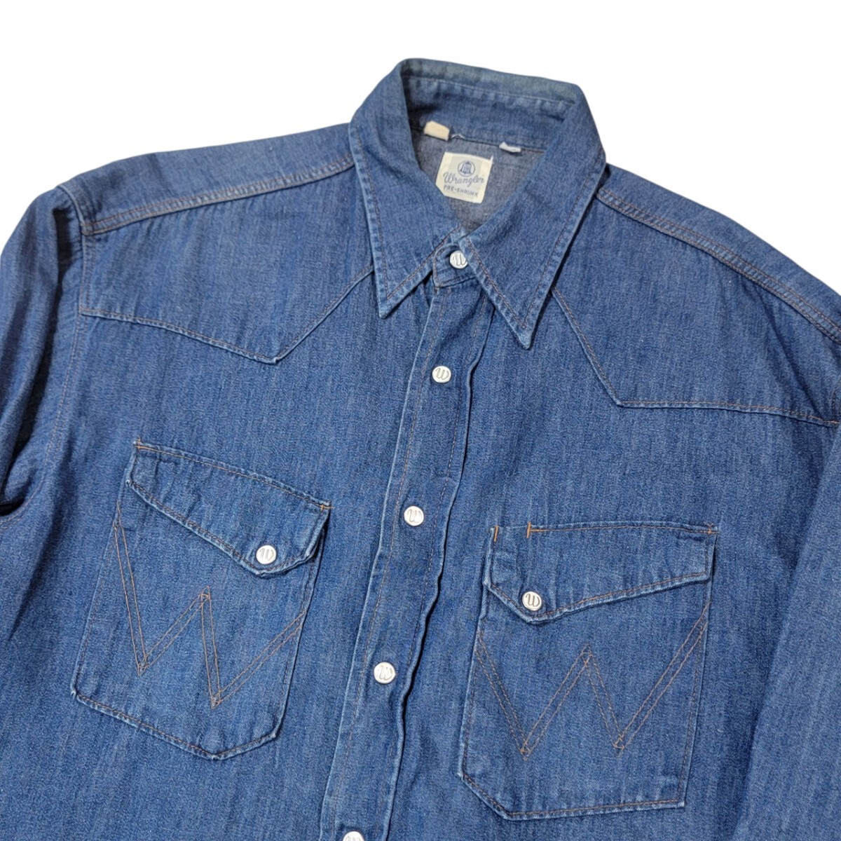 木村拓哉愛用 27MW 90S 忠実復刻 ラングラー Wrangler ダンガリーシャツ US M 日本L程度 ウエスタンシャツ 濃紺 デニムシャツ