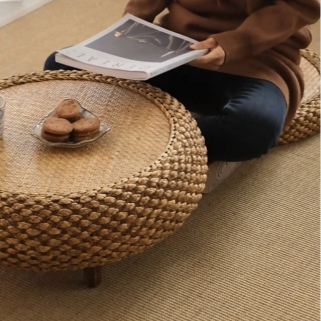 畳コーヒーテーブル 掃き出し窓用小テーブル コタツ台 寝室用 シンプル窓辺の低い卓 藤編み(ふじあみ)