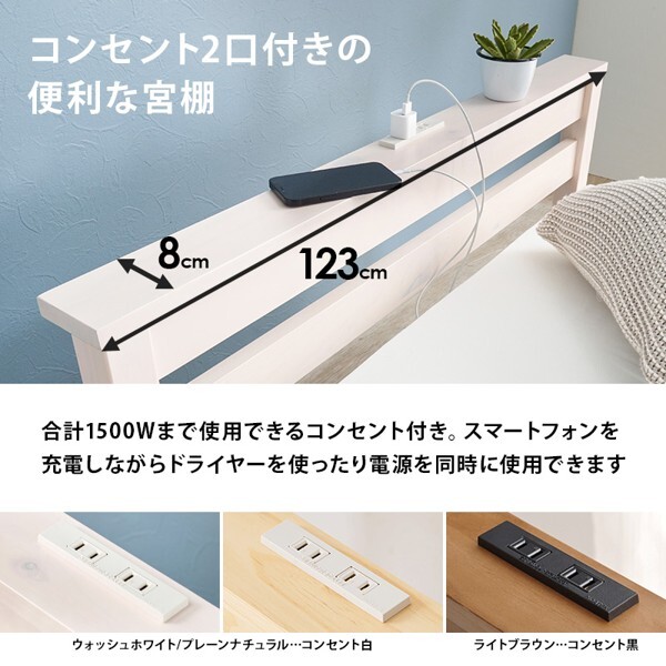 ※現在ご覧の商品ページはプレーンナチュラルのご購入ページとなります。 ヤフオクの仕様上単一ページに複数バリエーションを掲載することができませんので、他バリエーションが希望の場合は別ページでご購入お願い致します。 ネジなし、工具不要で簡単組立。 模様替えや引っ越しにも便利な宮付きベッドです。 大容量収納可能な引出し2杯付き 配達業者を指定いただくことはできません。 北海道/沖縄/離島のお届けに別途中継料金が発生します。 ※別途送料が発生する場合は後ほどご連絡させていただきます。 当店は正規店です。 タイミングによっては在庫切れの場合があります。