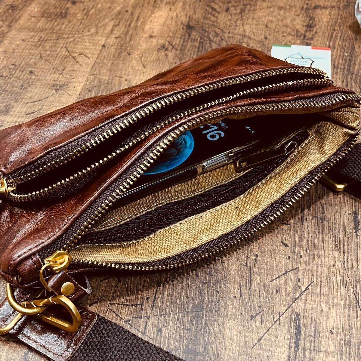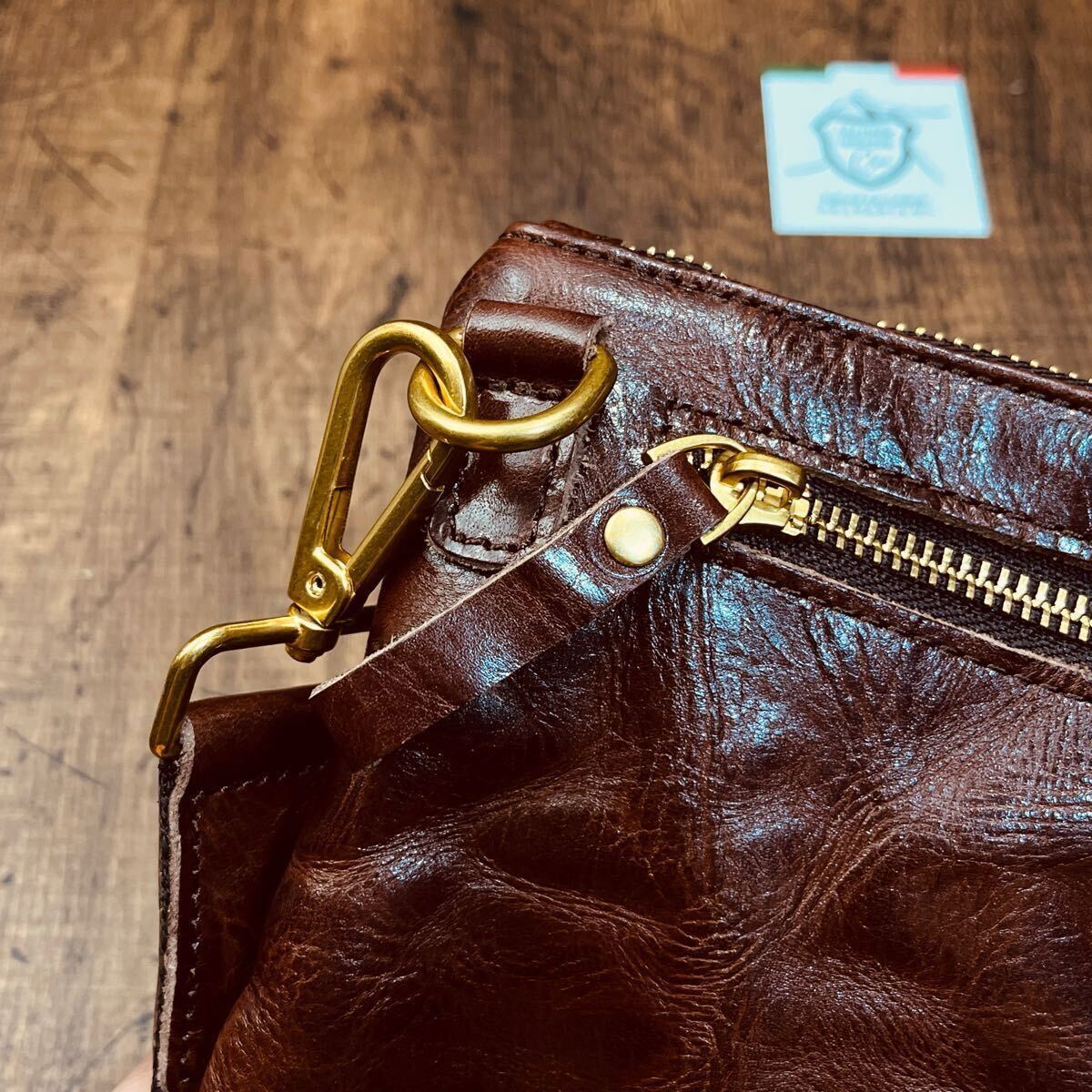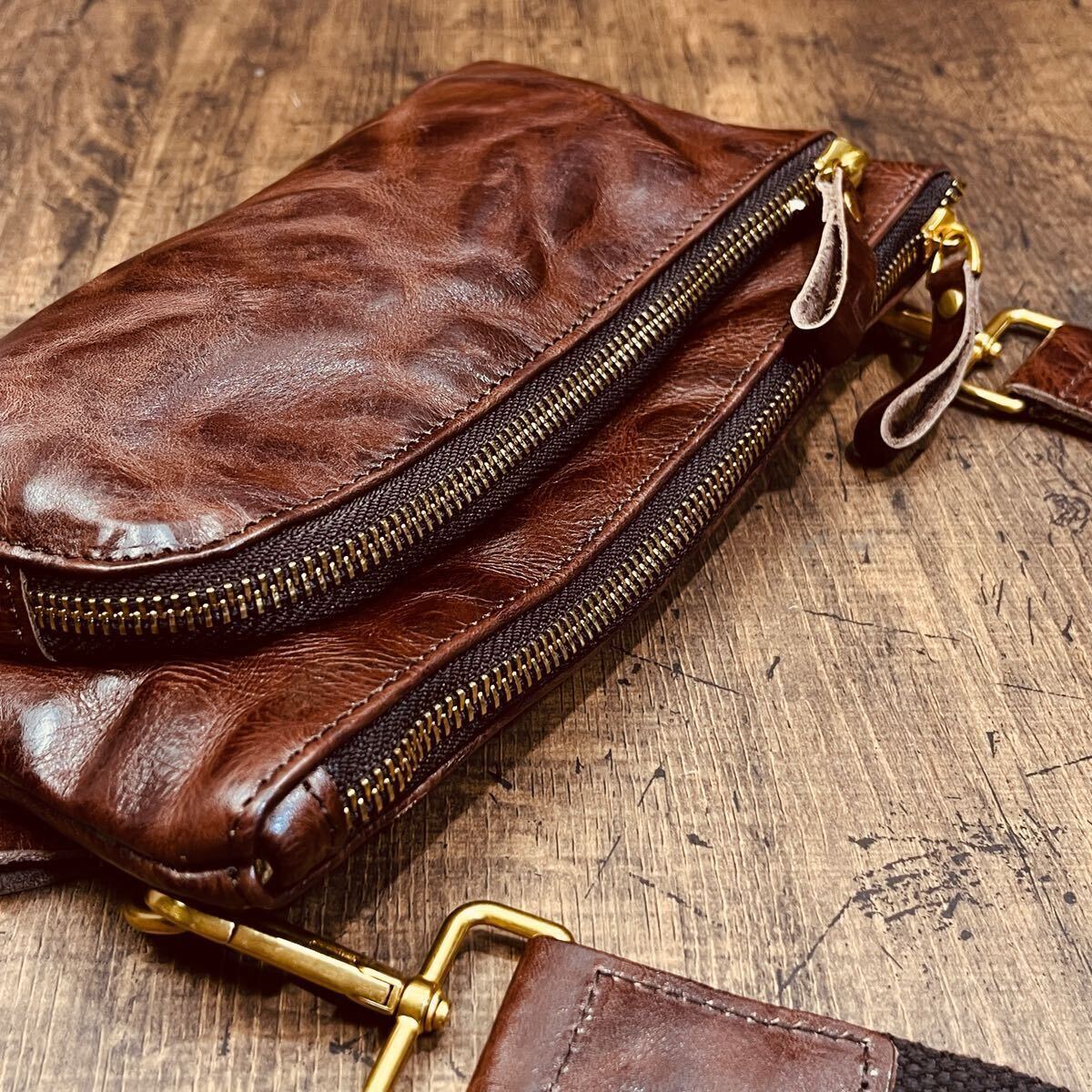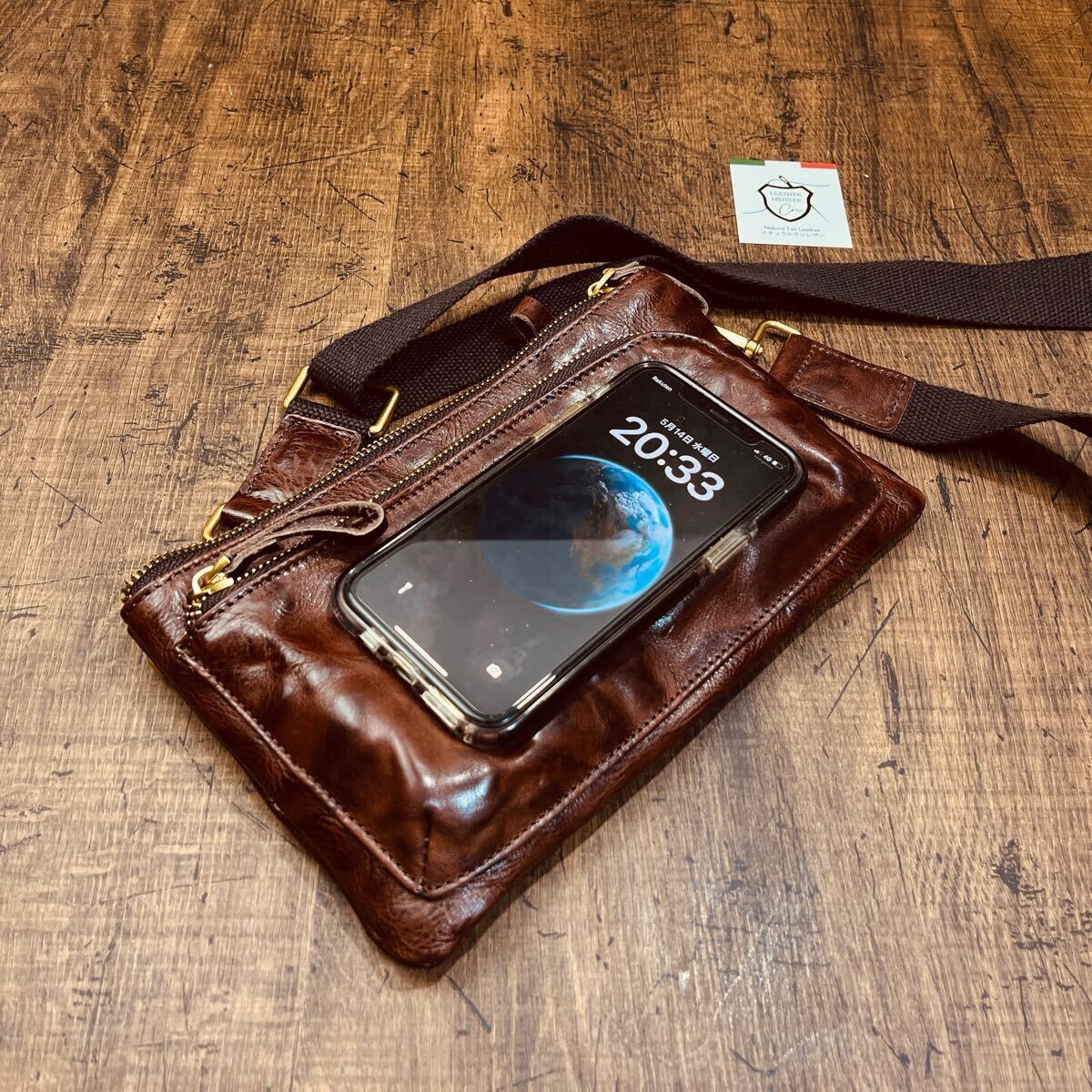 牛革を使用し、カジュアルな中に落ち着いた雰囲気を漂わせています。財布やスマホなどの必携品を余裕をもって収納可能。休日のちょっとした外出にベストな大きさです。使いやすい機能性とコーディネートしやすい絶妙なデザインが人気のショルダーバッグです
