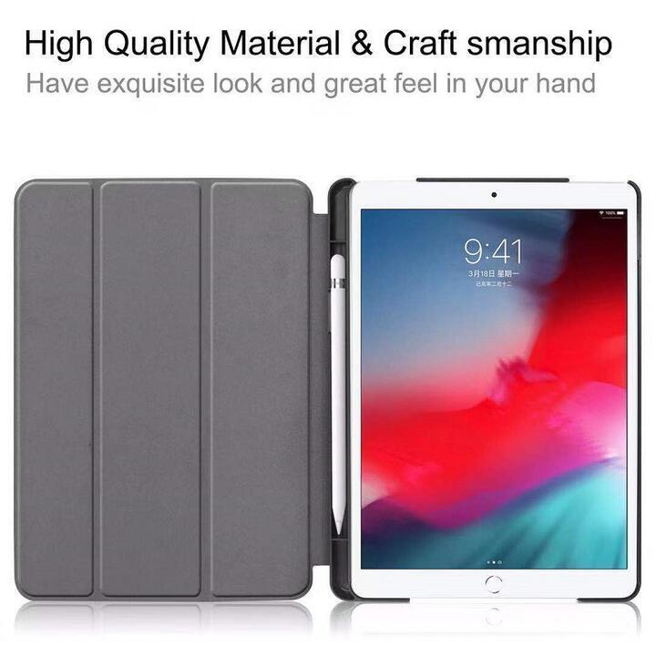 | ☆ Apple ペンシル収納スロット ☆ ケースに装着したまま、充電や各機能問題なくアクセスできます。 ☆ 三つ折り2タイプスタンド機能付き、映画鑑賞やファイル作成などに、適しています。 ☆ カバー部マグネット吸着により、オートスリープON/OFF対応、勝手に開くことはありません。 |