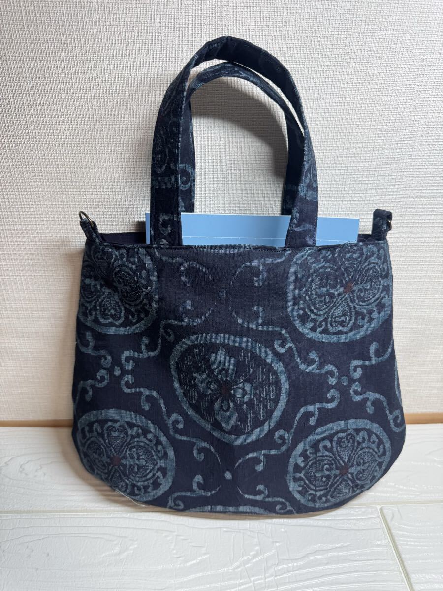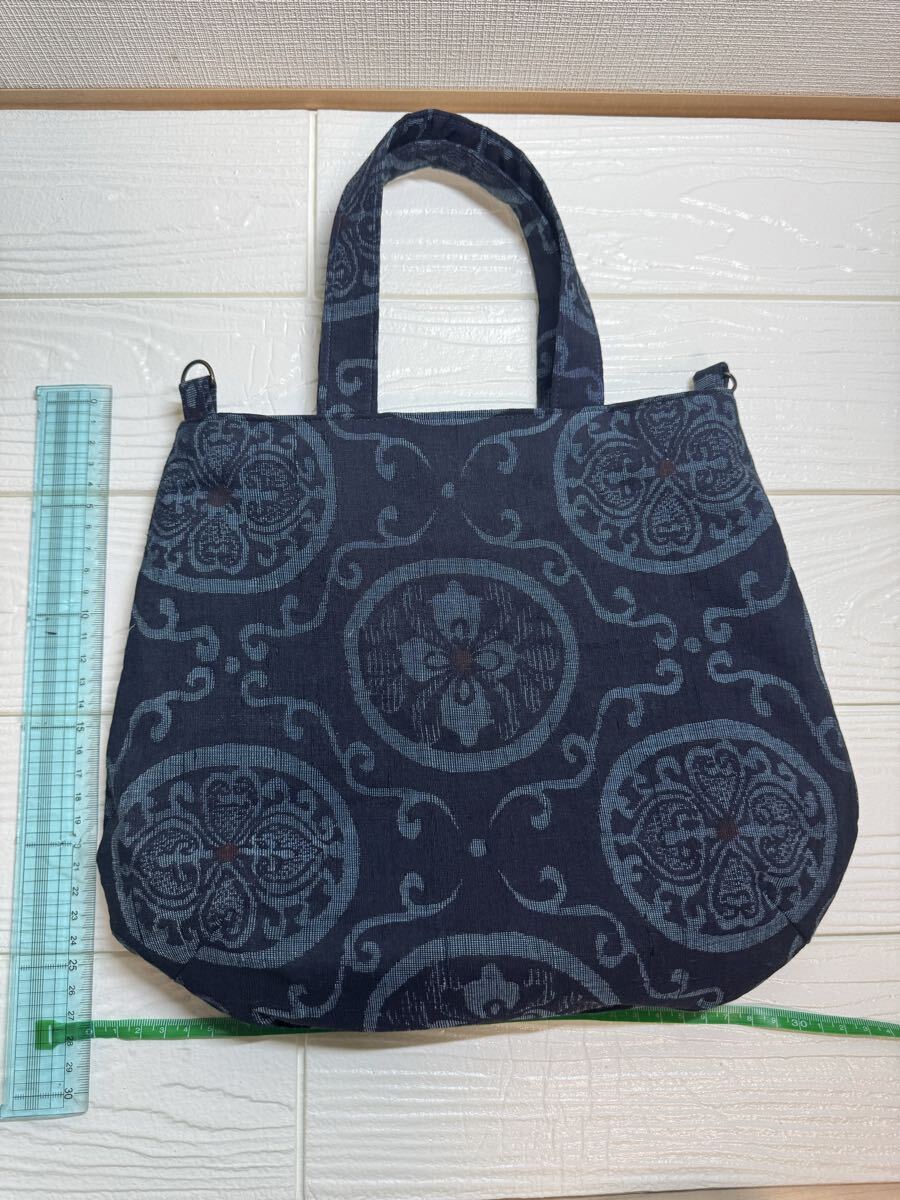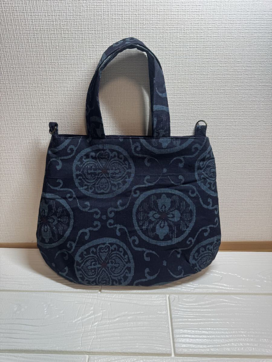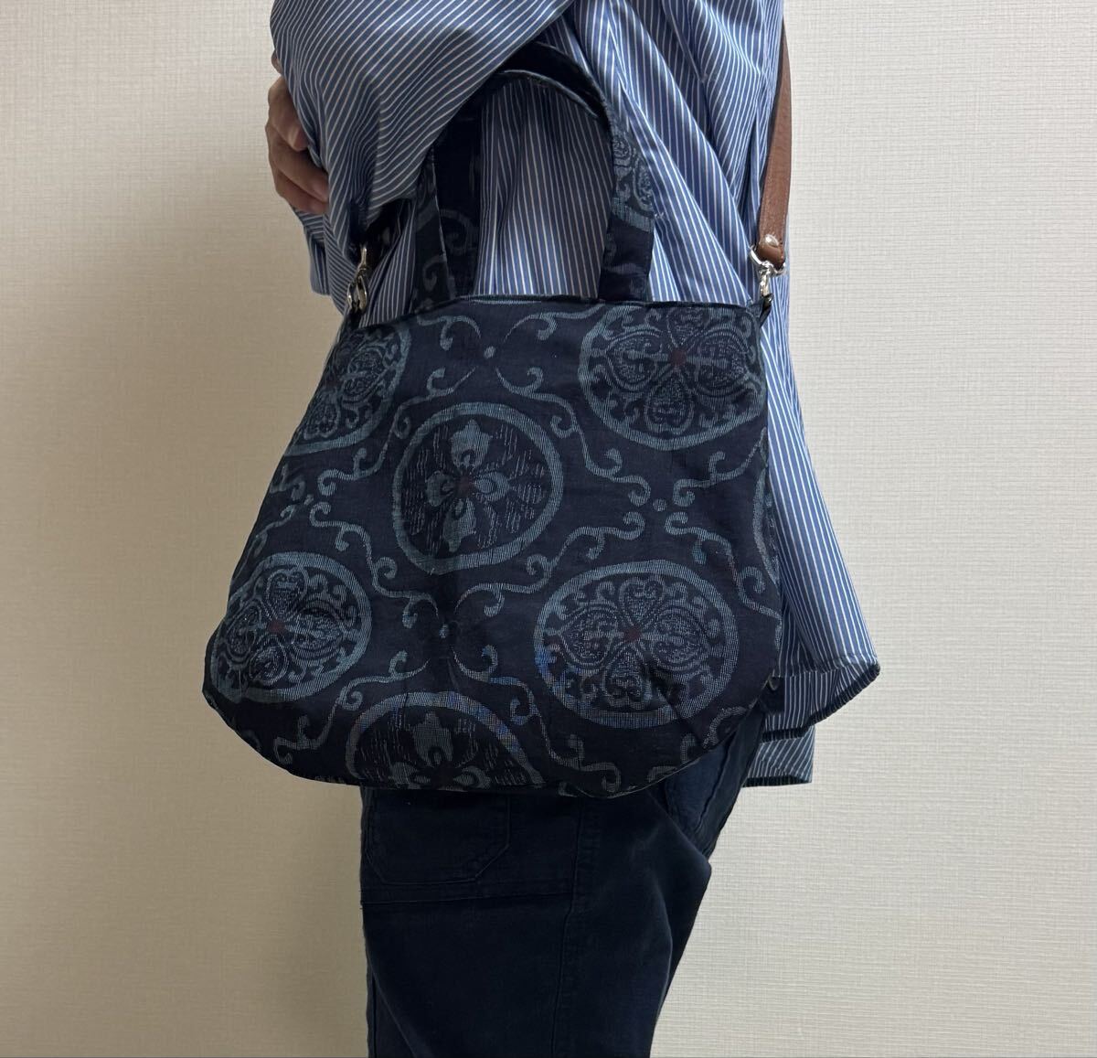 着物で作った手提げ丸型ショルダー2wayバッグです。