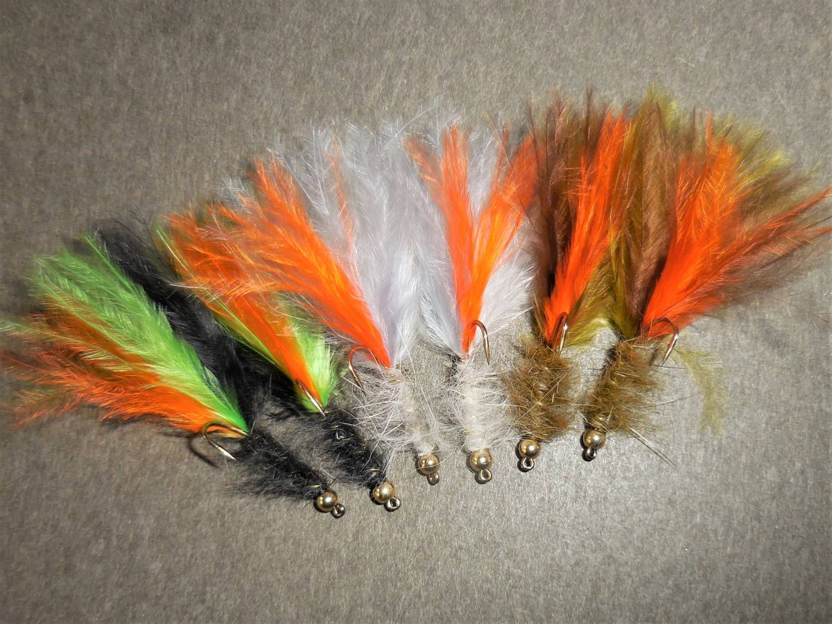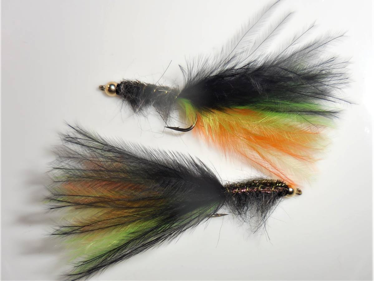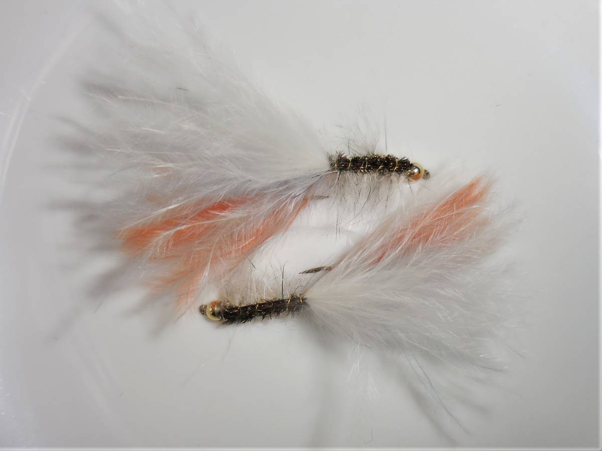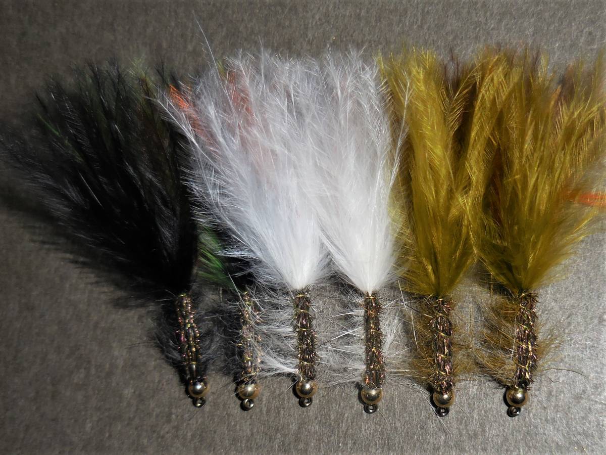 3色のマラブーが、トラウトの好奇心を誘う仕上がりになっています。ボディ背面のピーコックも、興味を引き立てます。特に湖や管理釣り場などの止水域でのリトリーブでの釣りにお勧めです。フライは全てウエイト入りです。