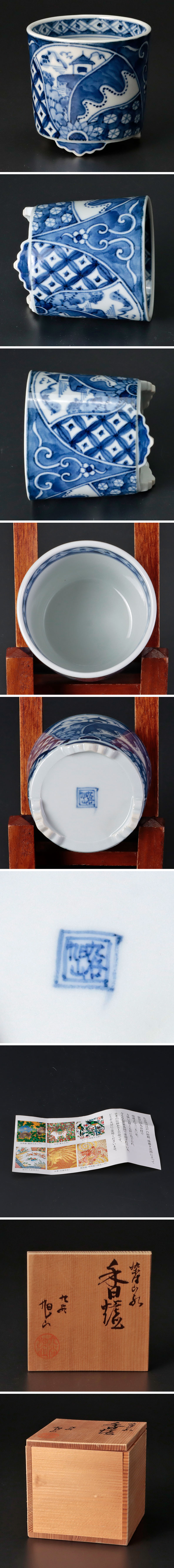 | 【古美味】九谷旭山 染付山水香炉 香道 茶道具 保証品 |