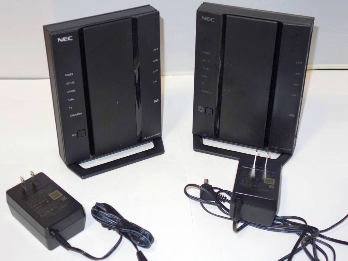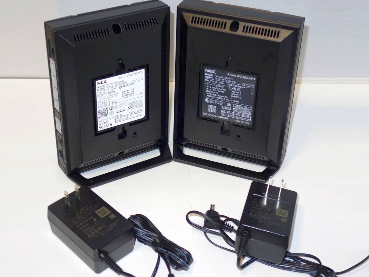 状態はきれいな感じで クリーニング済みとなっており 品物はWG2600HP3本体と台座、ACアダプタ WG2600HS2本体と台座、ACとアダプタ そしてLANケーブルと言う構成です。 |