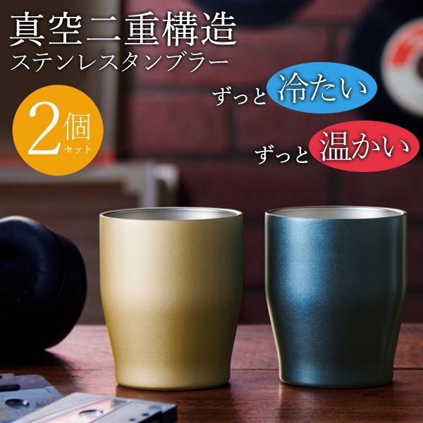 ステンレスタンブラー 2個セット 金色 保温 保冷 おしゃれ マイ コップ 景品 コーヒー 新生活 送料無料- 60N◇ CAタンブラー2個:【金+金】