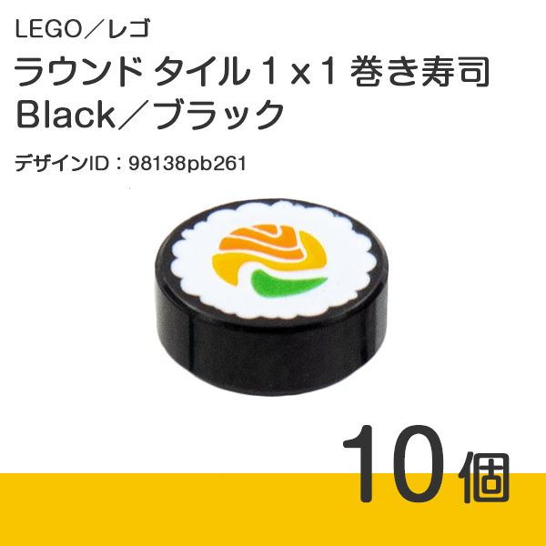 LEGO レゴ 正規品 ラウンドタイル 1 x 1 巻き寿司 /Black/ブラック/黒 10個 プリントタイル【新品】No.98138pb261