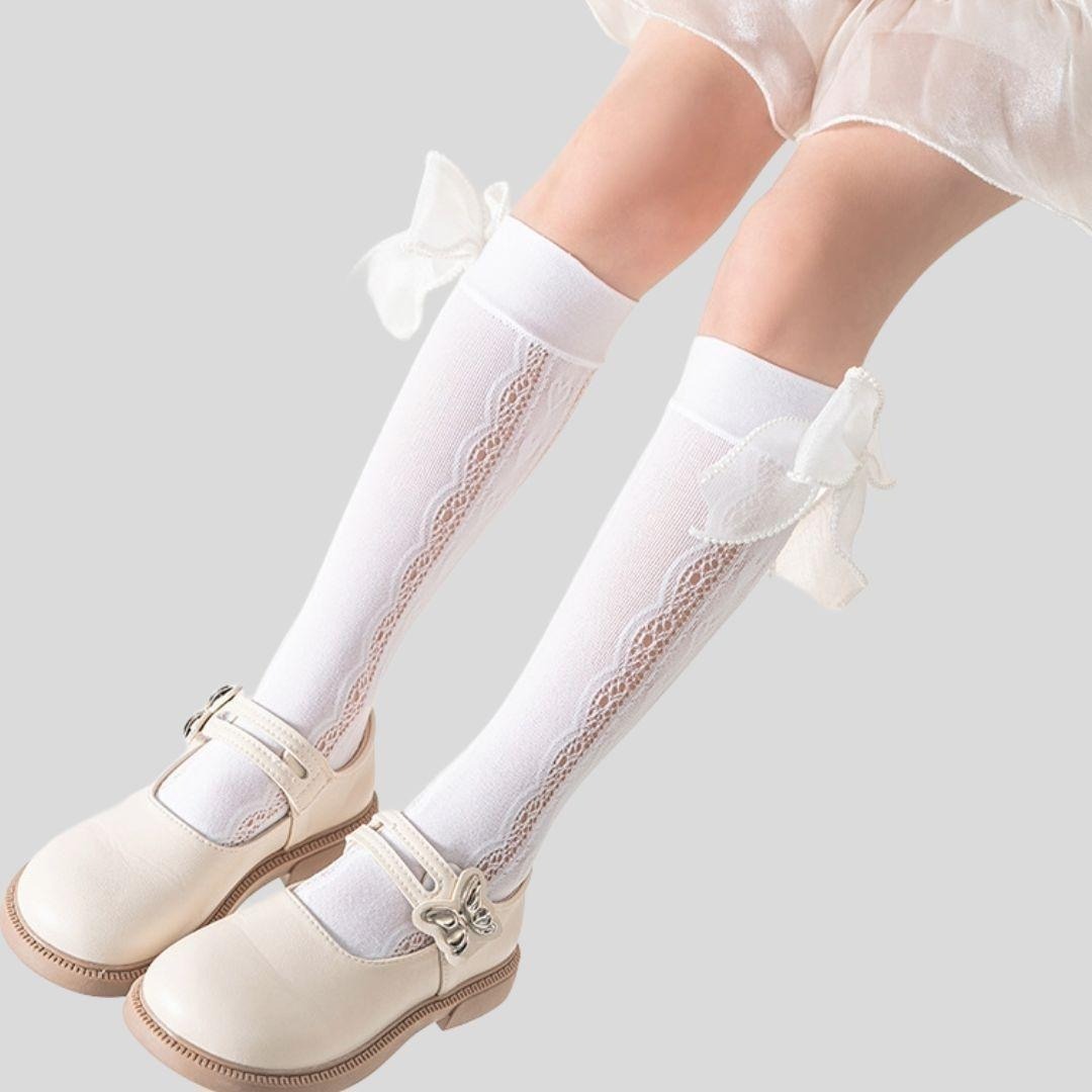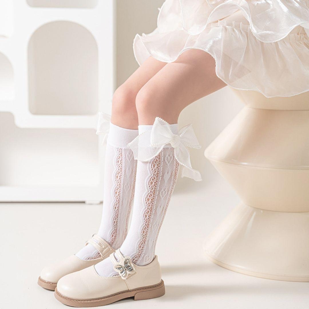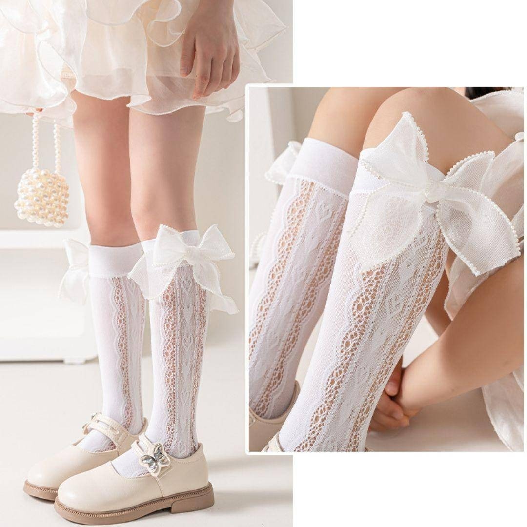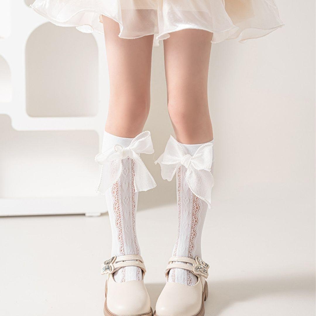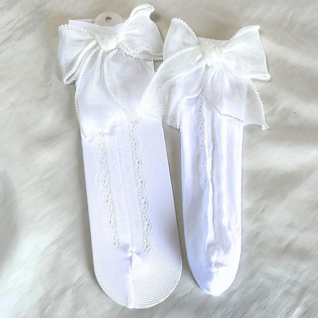 ハート柄レースソックス 大きめリボン付き