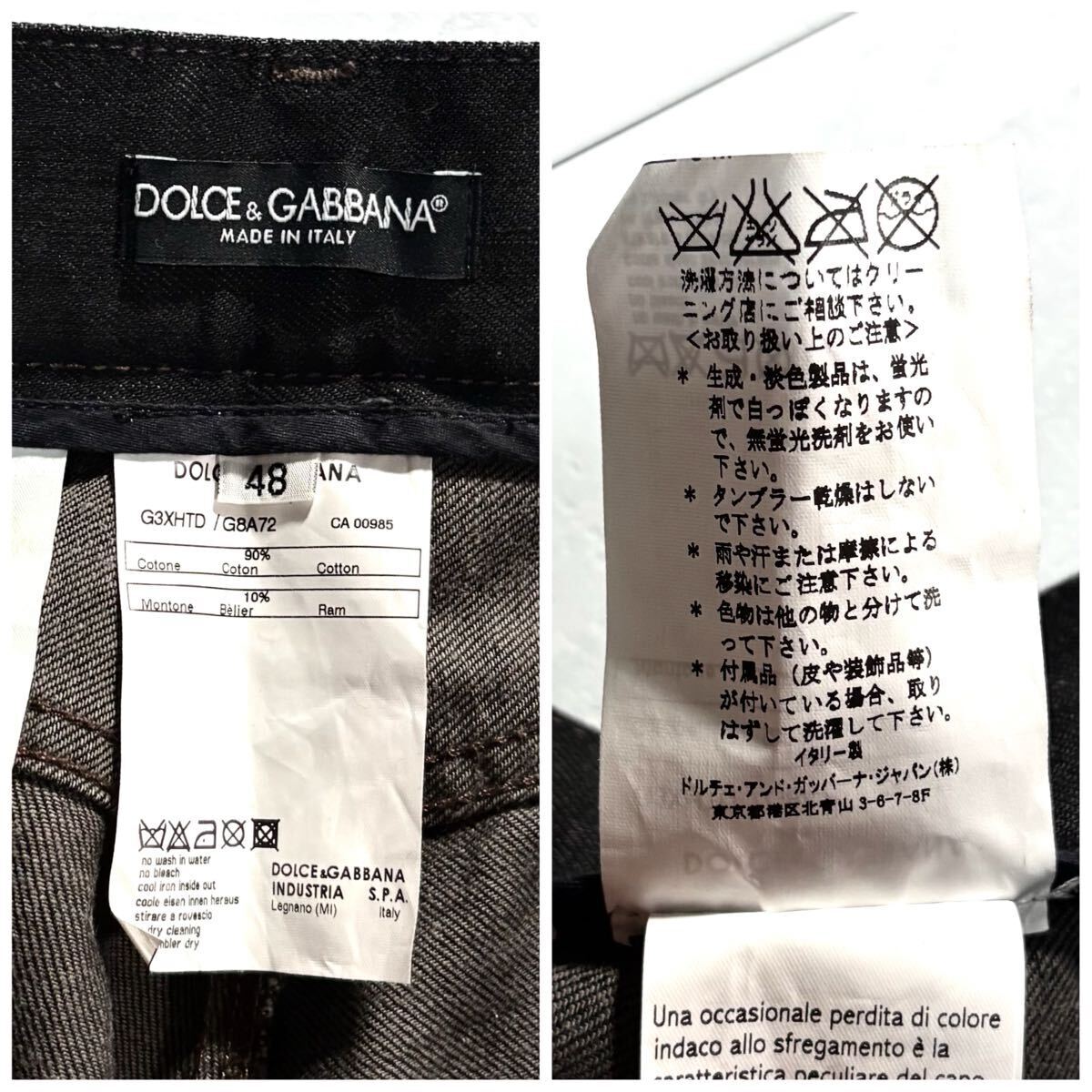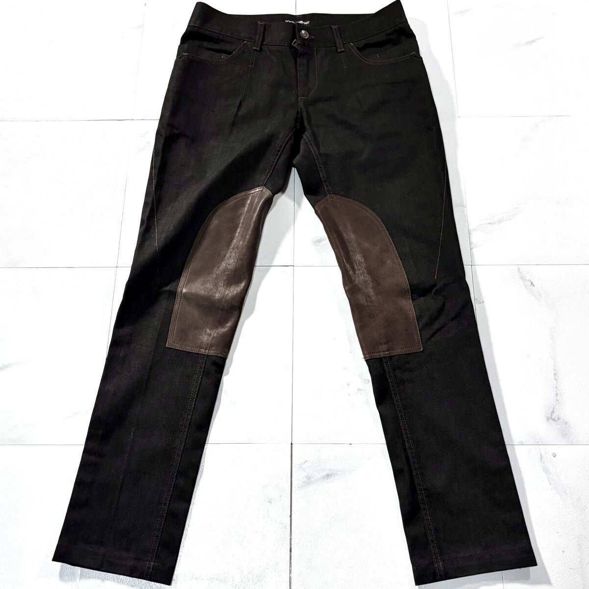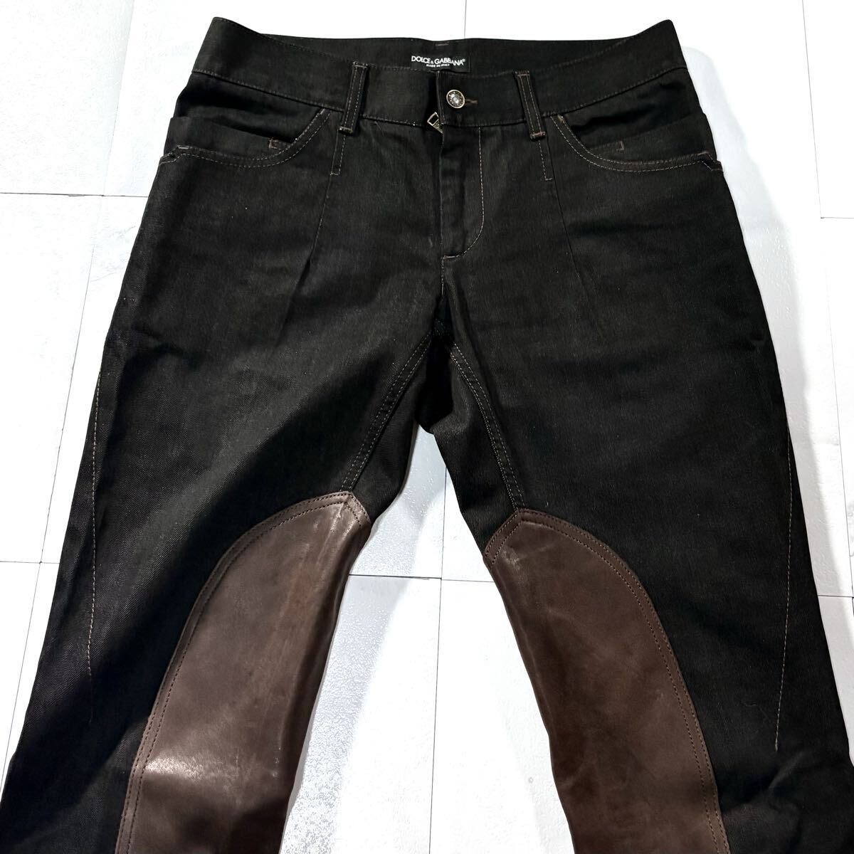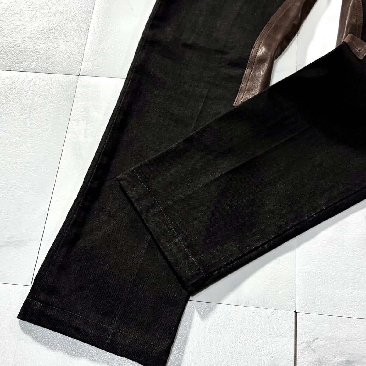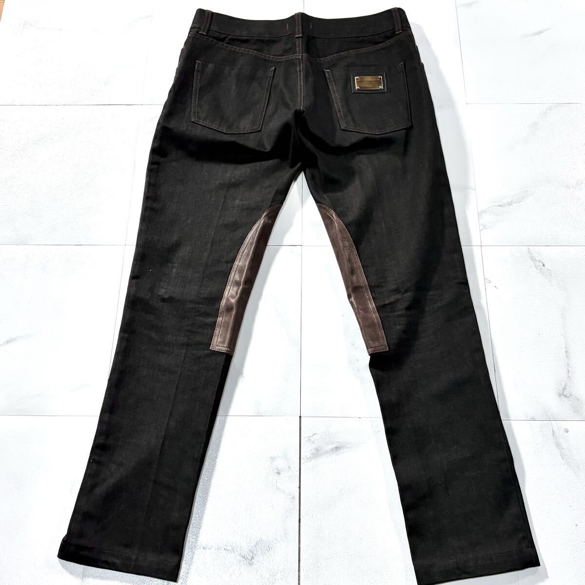 送料無料●未使用級 Lサイズ DOLCE&GABBANA MEN'S COLLECTION ドルチェ&ガッバーナ羊革ラムレザーデニムジーンズ ジーパン パンツ ロゴ金具