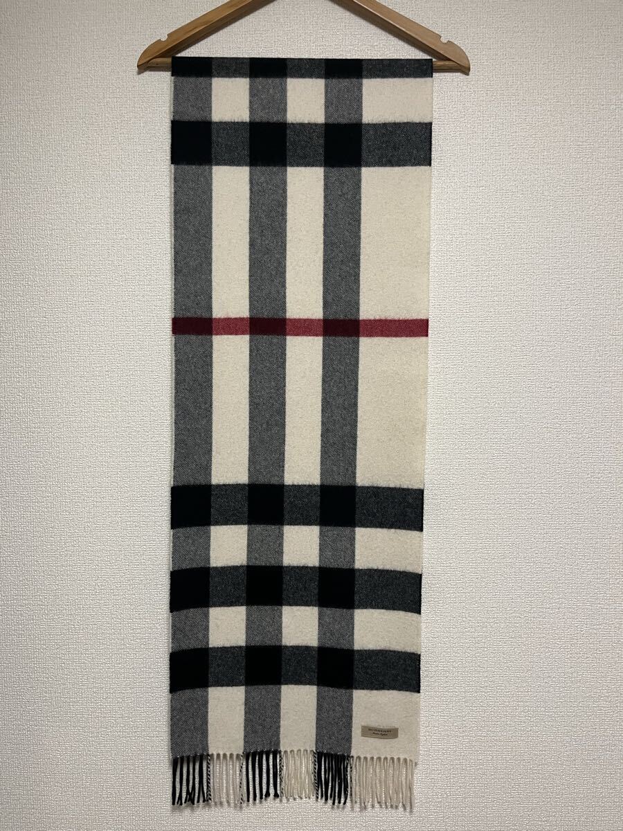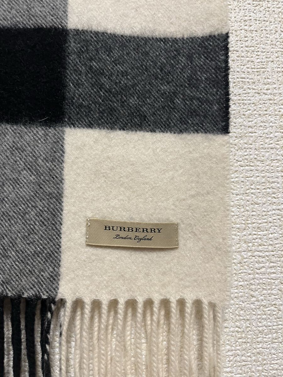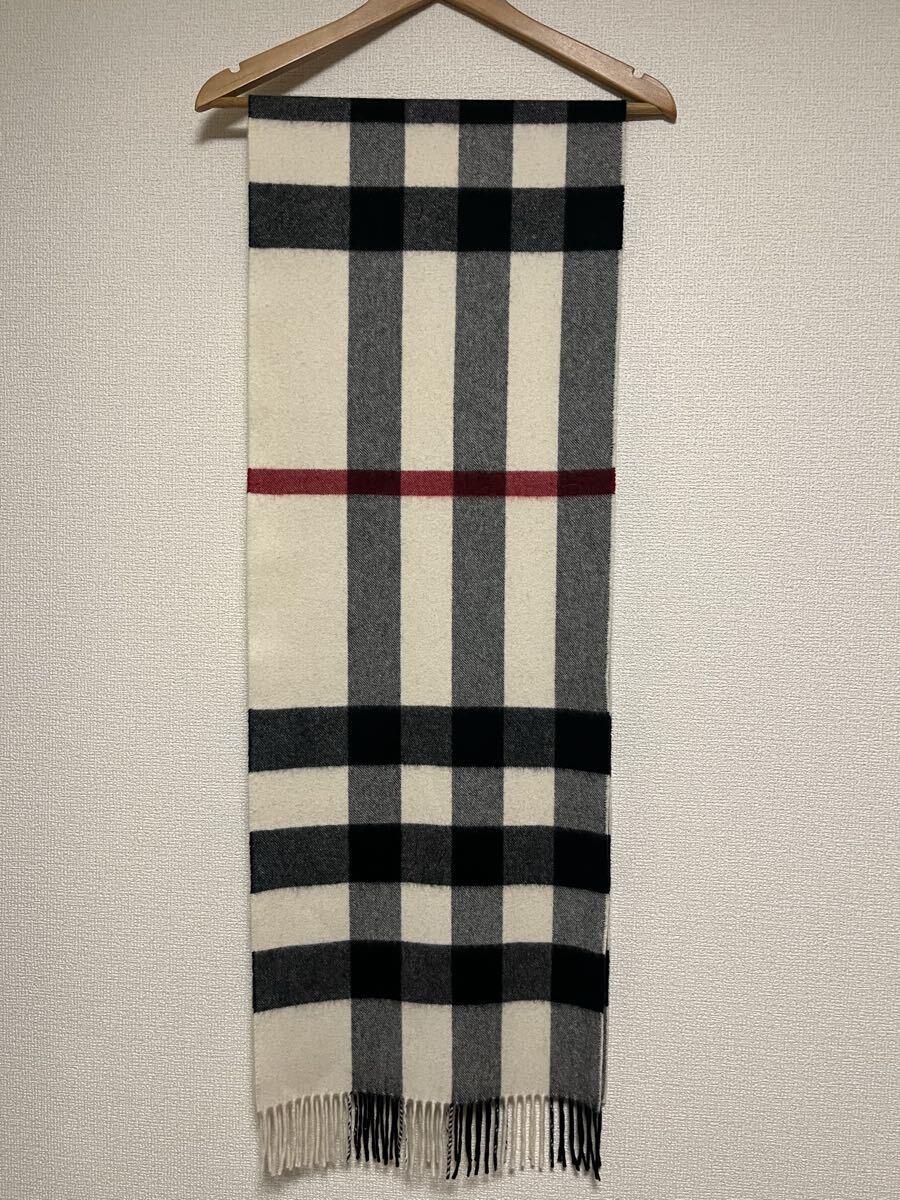 バーバリー カシミヤ100% 大判マフラー ホワイト アイボリー系