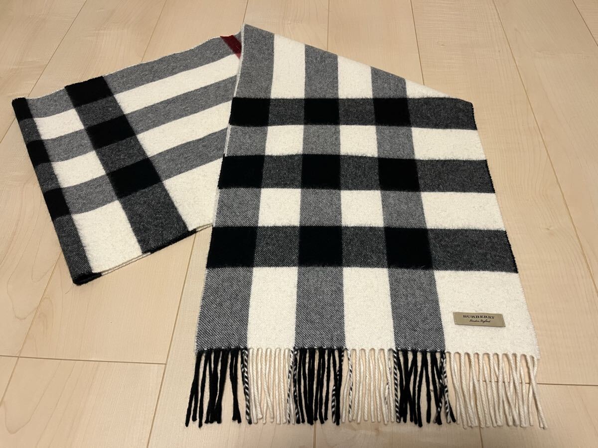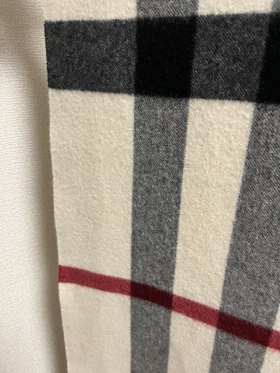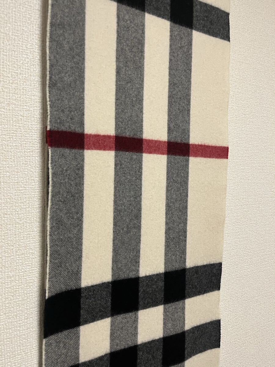 バーバリー カシミヤ100% 大判マフラー ホワイト アイボリー系