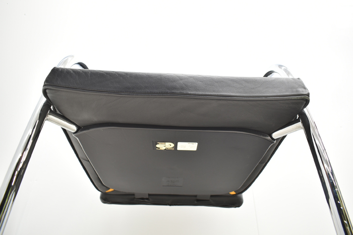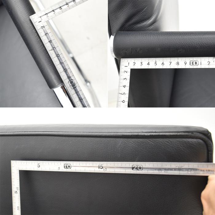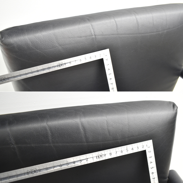 | ■素材 仕様 | ●バックレスト&シート:ポリウレタンフォーム、ダブルシーム付レザーカバー、レザー張りアームレスト ●ベース:クロームポリッシュ仕上 |