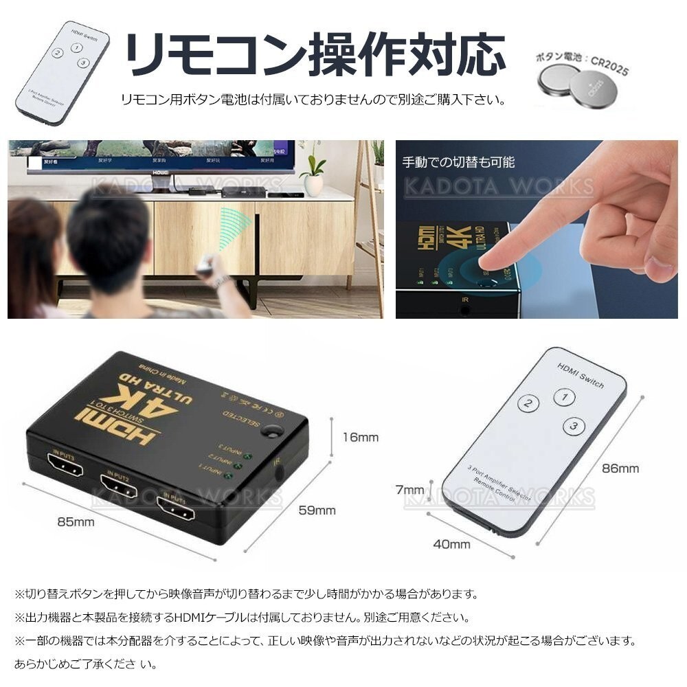 3台のHDMI機器の映像・音声を切り替えて1台のテレビやプロジェクター等へ出力できます。
