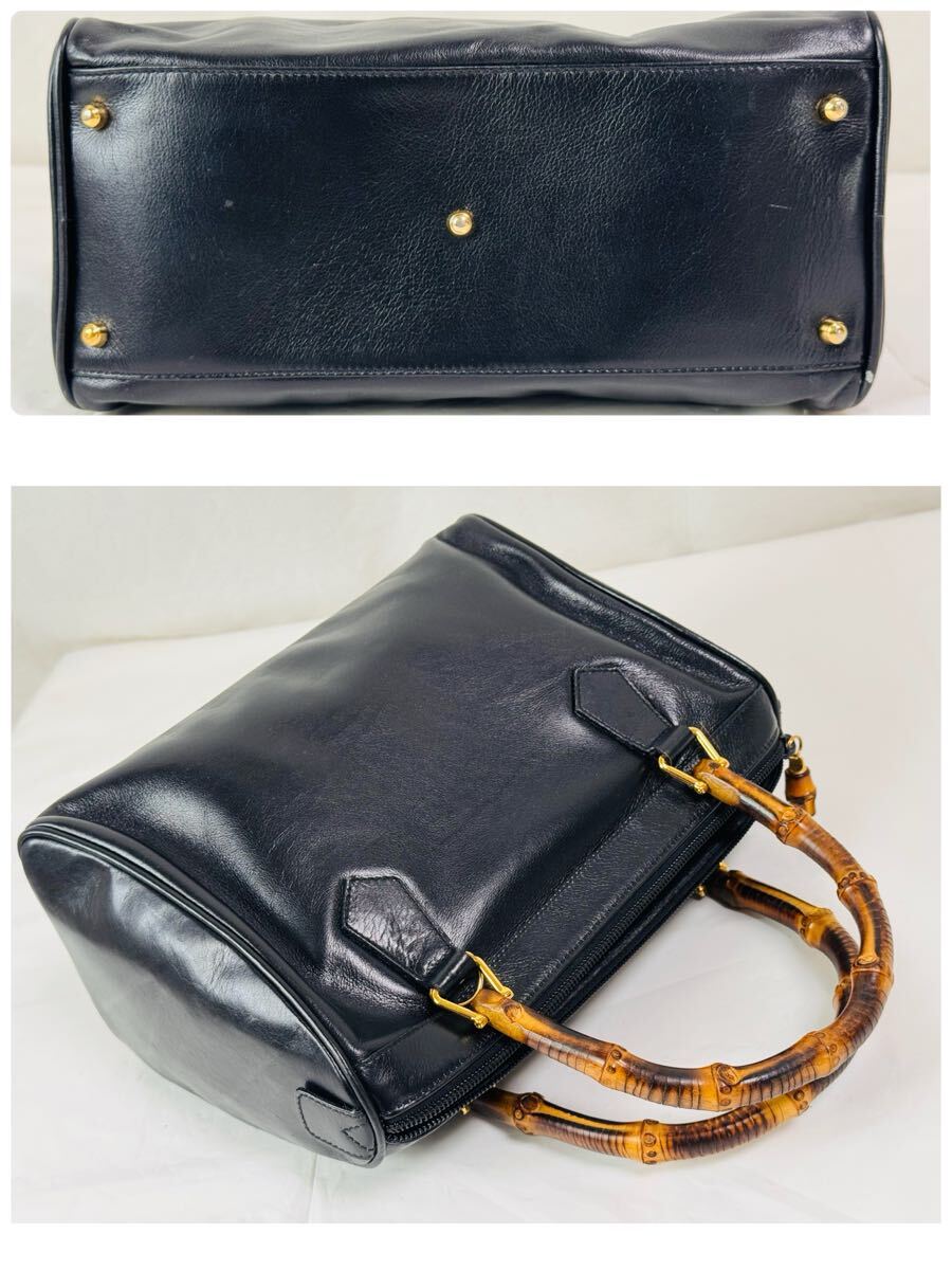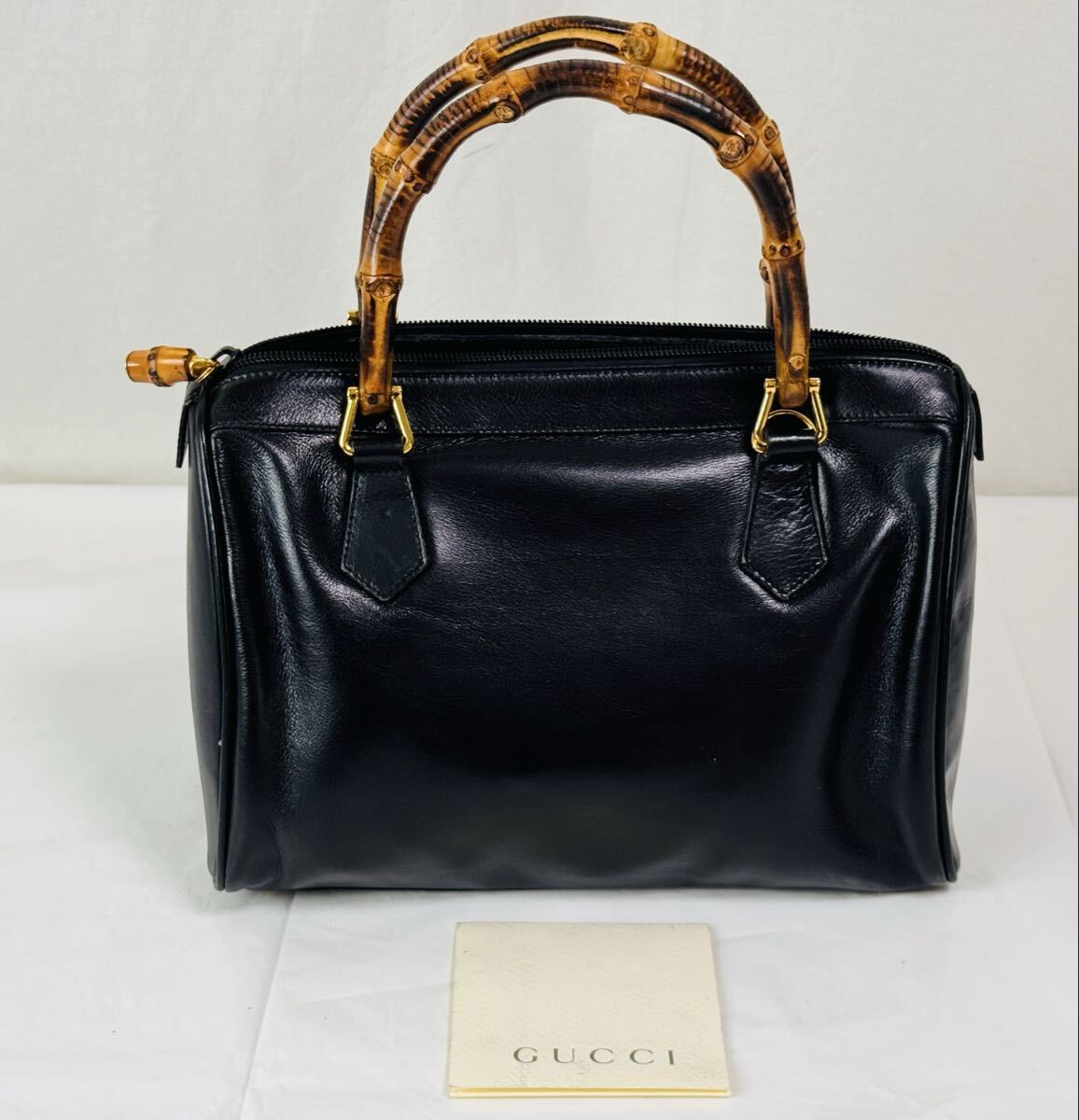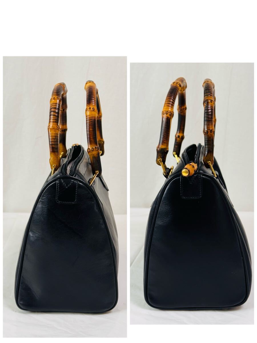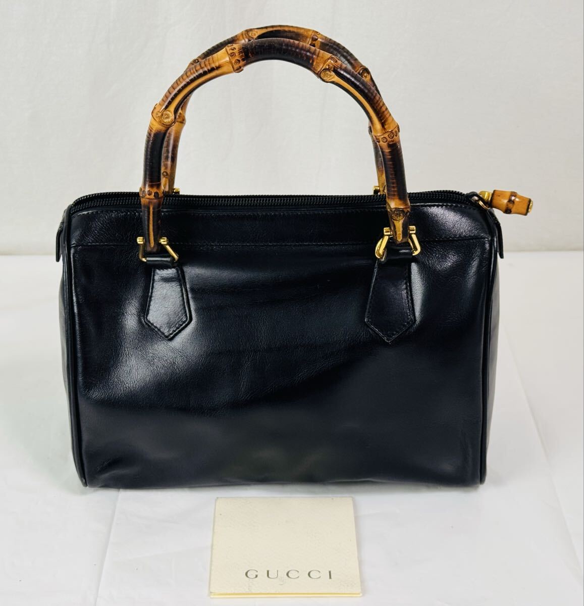 Ψ GUCCI バンブー ミニボストン ハンドバッグ レザー ショルダー 黒系/1023-77/296971