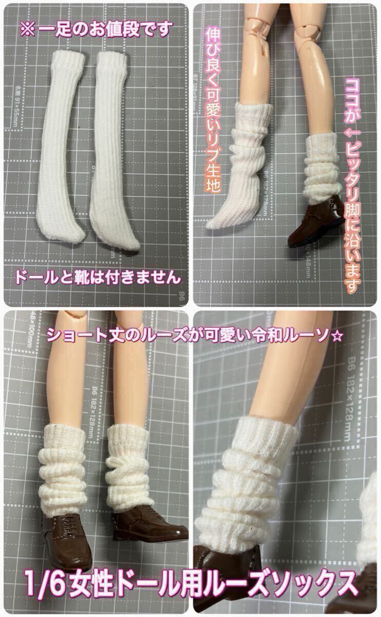 1/6スケール女性ドール汎用サイズのルーズソックスです。ショートでもダブ付かない令和ルーソ。