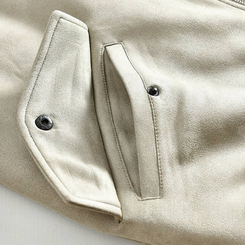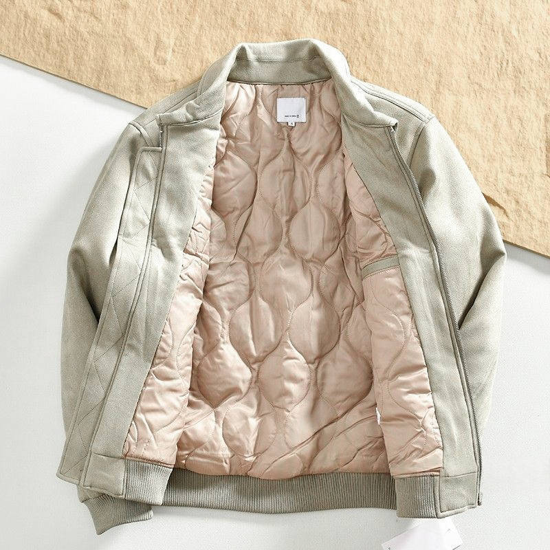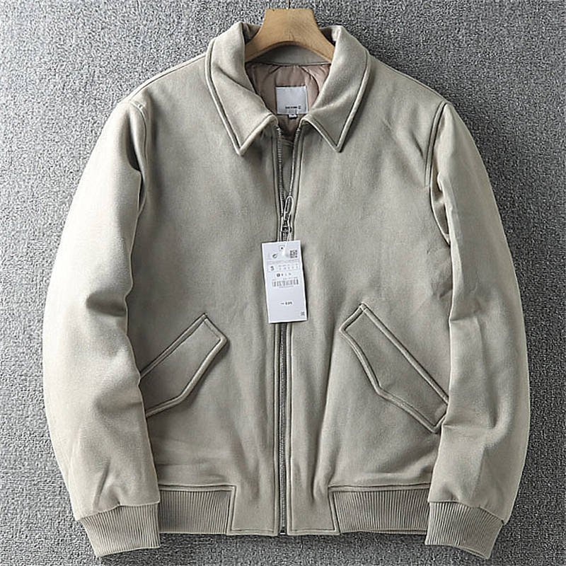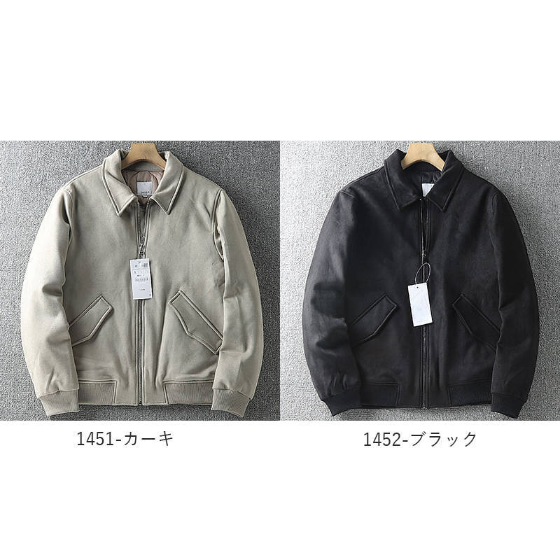 1451-XLカーキ 中綿ジャケット メンズ スエード調 折り襟 ジャケット 新品 防寒 暖かい 冬服 ビジネス カジュアル キルティング ブルゾン