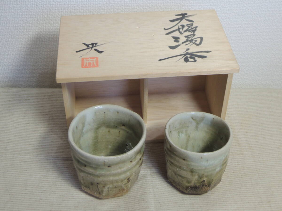 | 伊賀焼、夫婦湯呑、松本央作、共箱、未使用品 | |