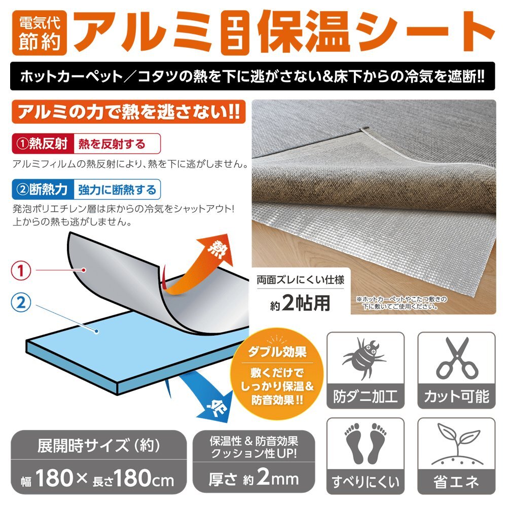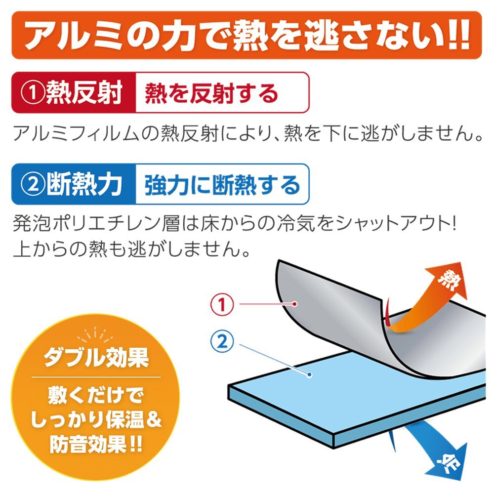 | ラグやカーペットの下に敷くだけで効果的! 断熱&保温でお部屋をあたたかく保ち、暖房費の節約にも! | |
