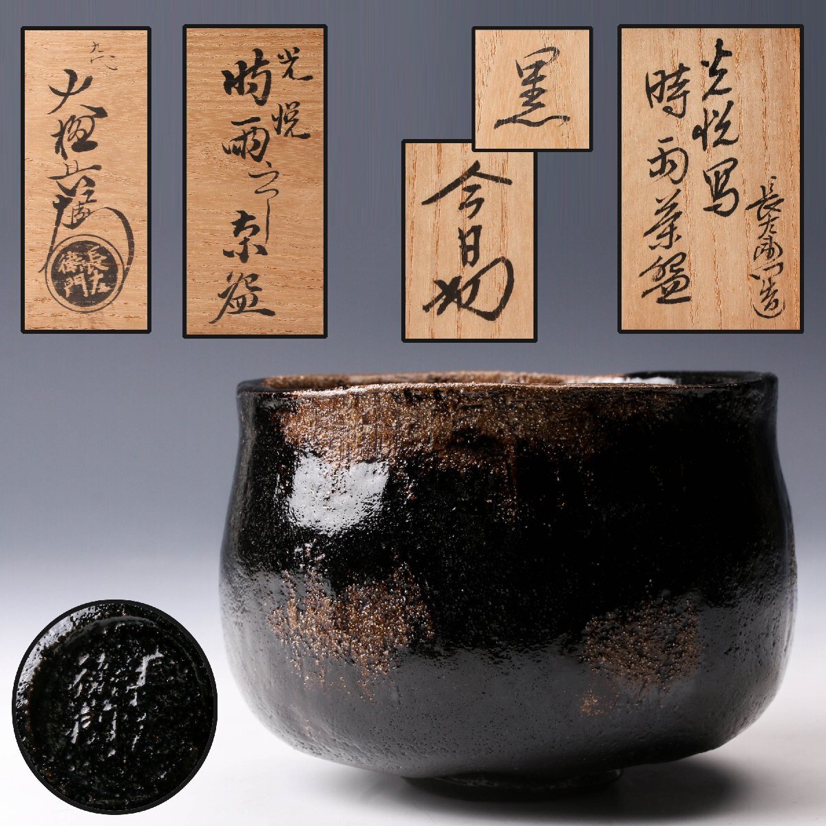 【佳香】九代 大樋長左衛門 光悦時雨写茶碗 裏千家十四代淡々斎(無限斎)(碩叟宗室)書付箱 共布 茶道具 本物保証