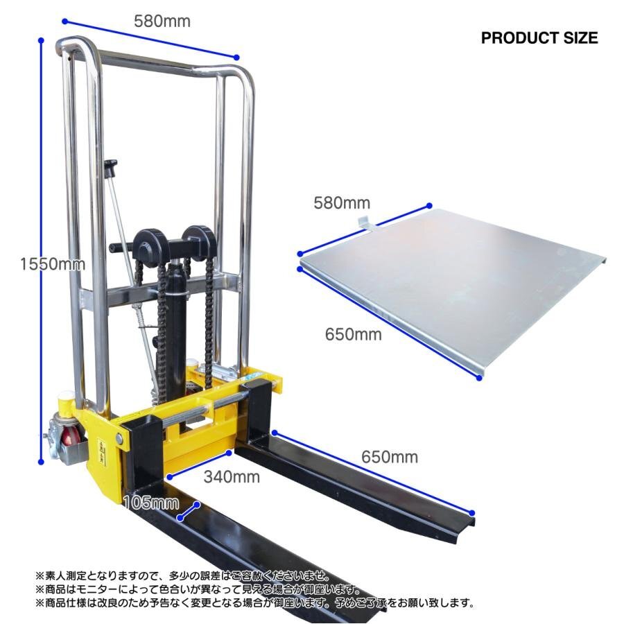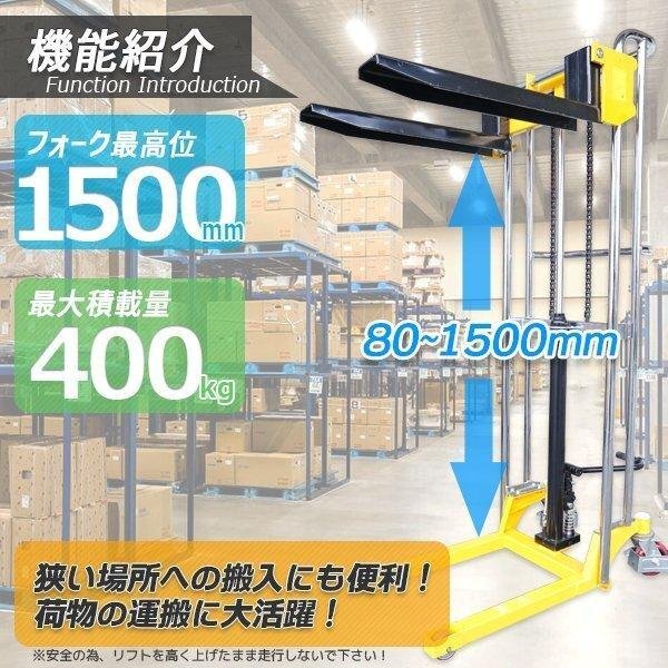 鉄板付 1台2役 ハンドフォークリフト 最大積載400kg 最高位1500mm 爪幅調節可昇降台車 テーブルリフト 手動 ハンドリフト 【営業店止め】