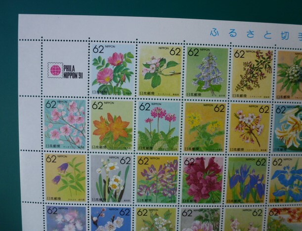 ふるさと切手・花 (都道府県の花)  47種連刷シート 1990.4.27   未使用   完美品
