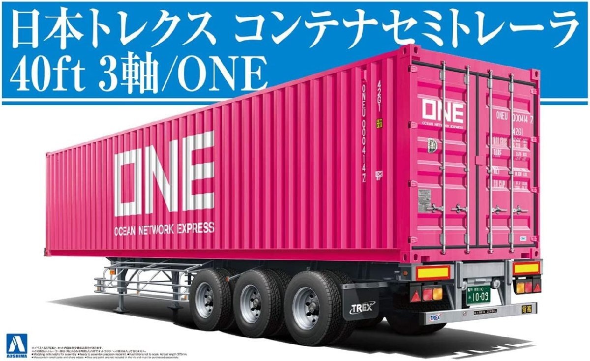アオシマ 1/32 ヘビーフレイトシリーズ No.3 日本トレクス コンテナセミトレーラ40フィート 3軸/ONE ジャパン(組立キット) 定価¥7400(税抜)