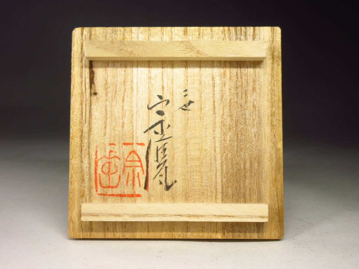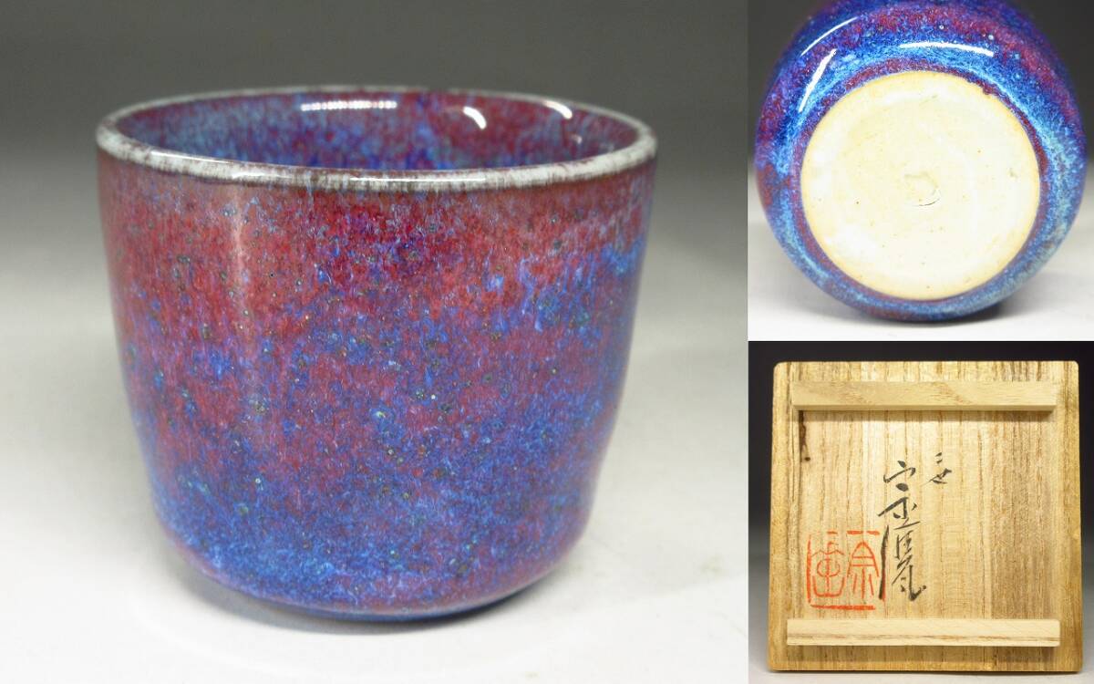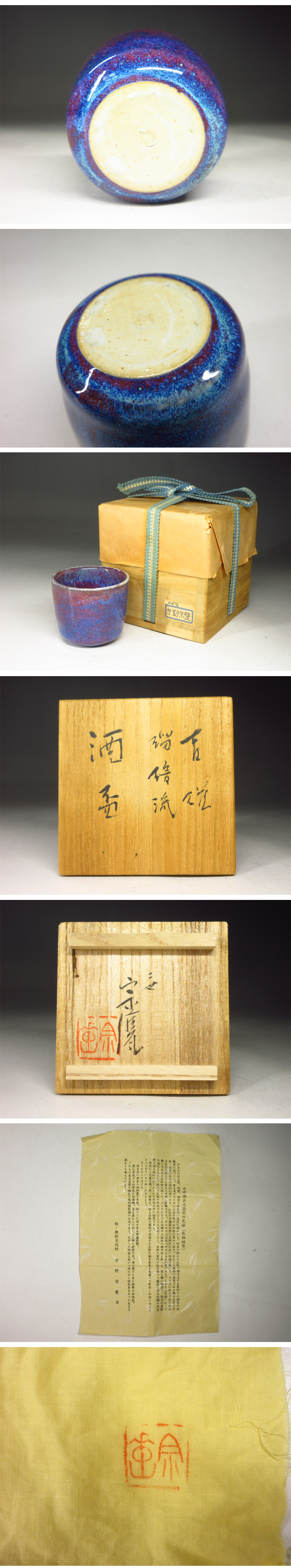 コレクター放出品 無形文化財『宇野宗甕』造 青磁瑠璃流酒盃 共箱 共布 栞付き 酒器 酒杯 本物保証