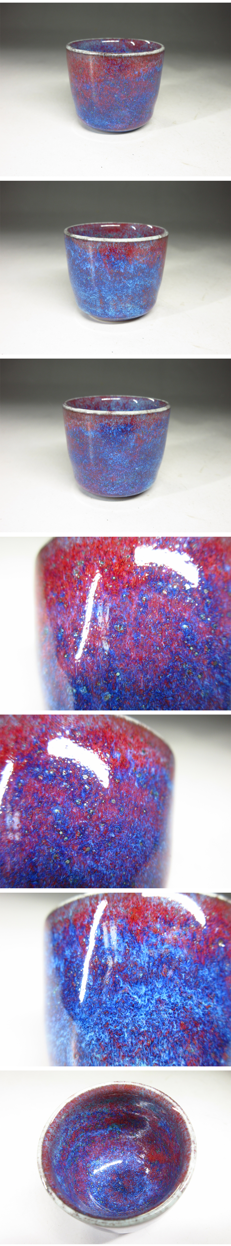 【漸】コレクター放出品 無形文化財『宇野宗甕』造 青磁瑠璃流酒盃 共箱 共布 栞付き 酒器 酒杯 本物保証【KK025】