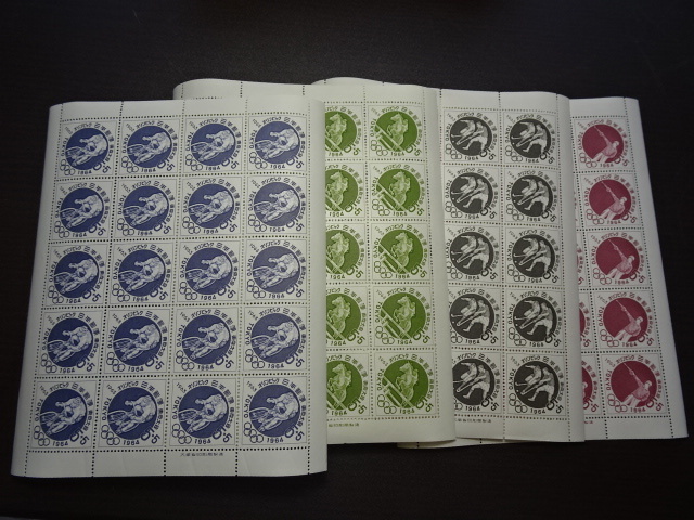 東京オリンピック寄付金付き切手 5次4種(自転車、馬術、ホッケー、射撃) 各1シート  極美品  売価800円