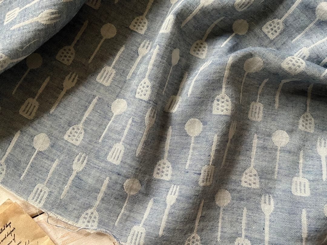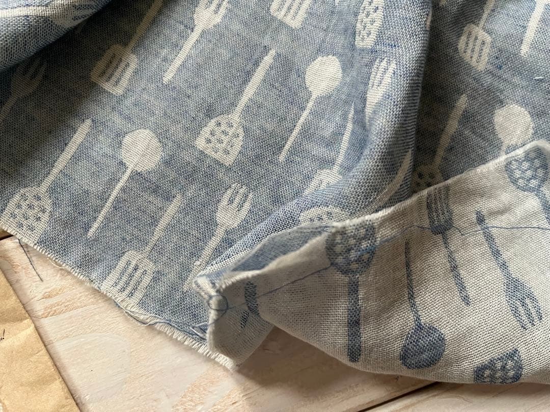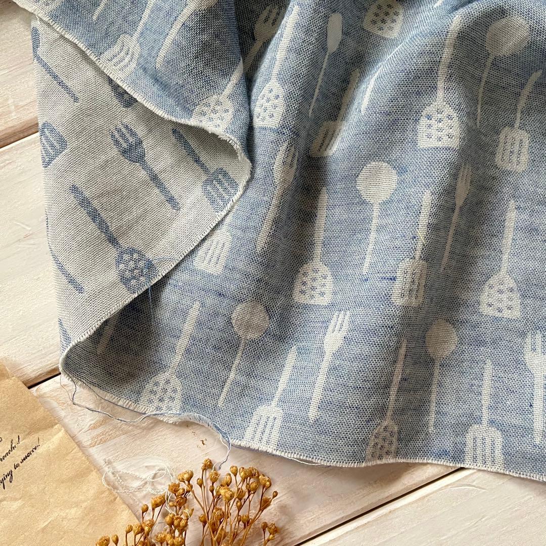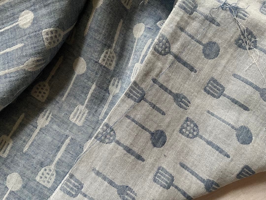 ■0.5m■延長可能オーガニック100%ダブルガーゼリバーシブルキッチン◇ブルー