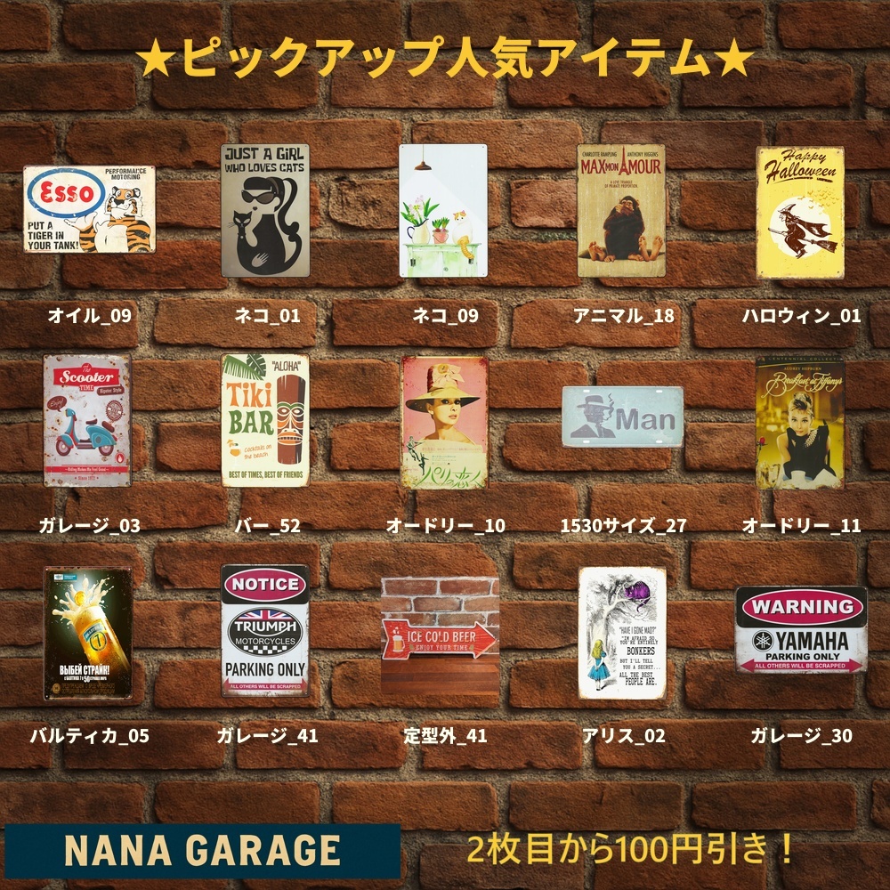 海外直輸入のヴィンテージ風ブリキ看板を中心に、
