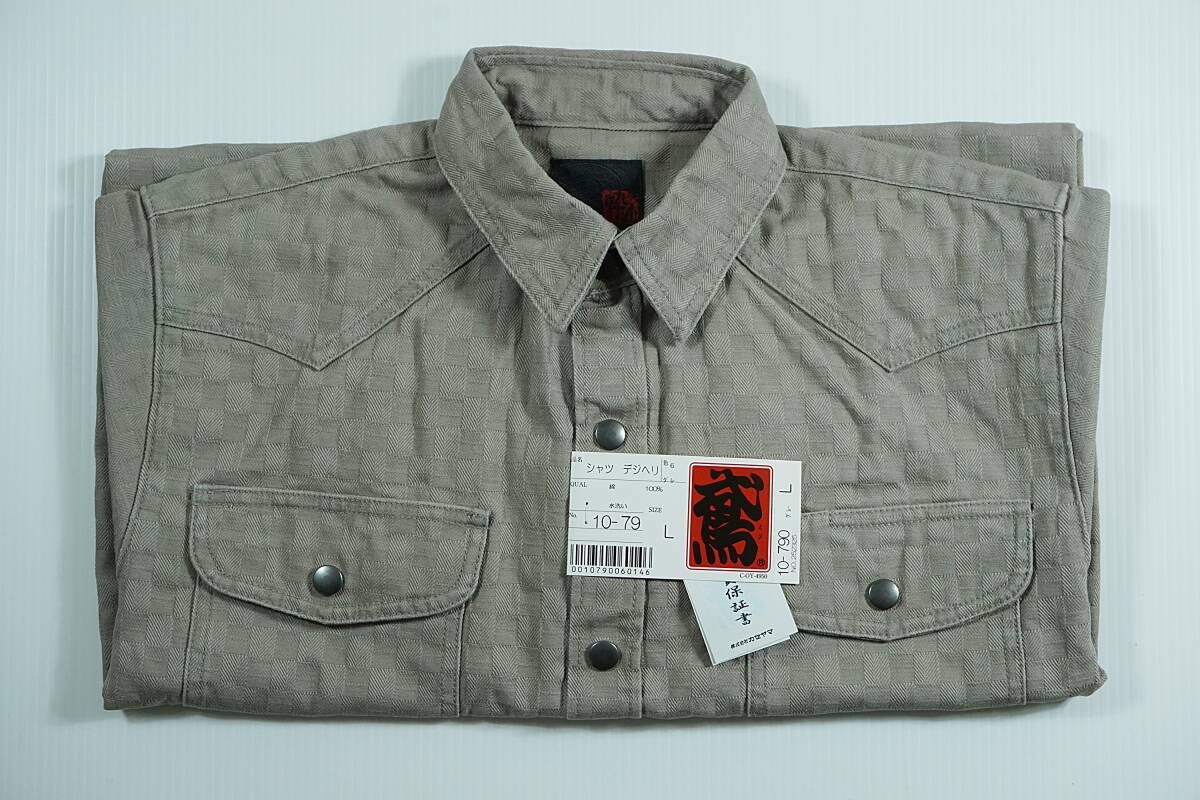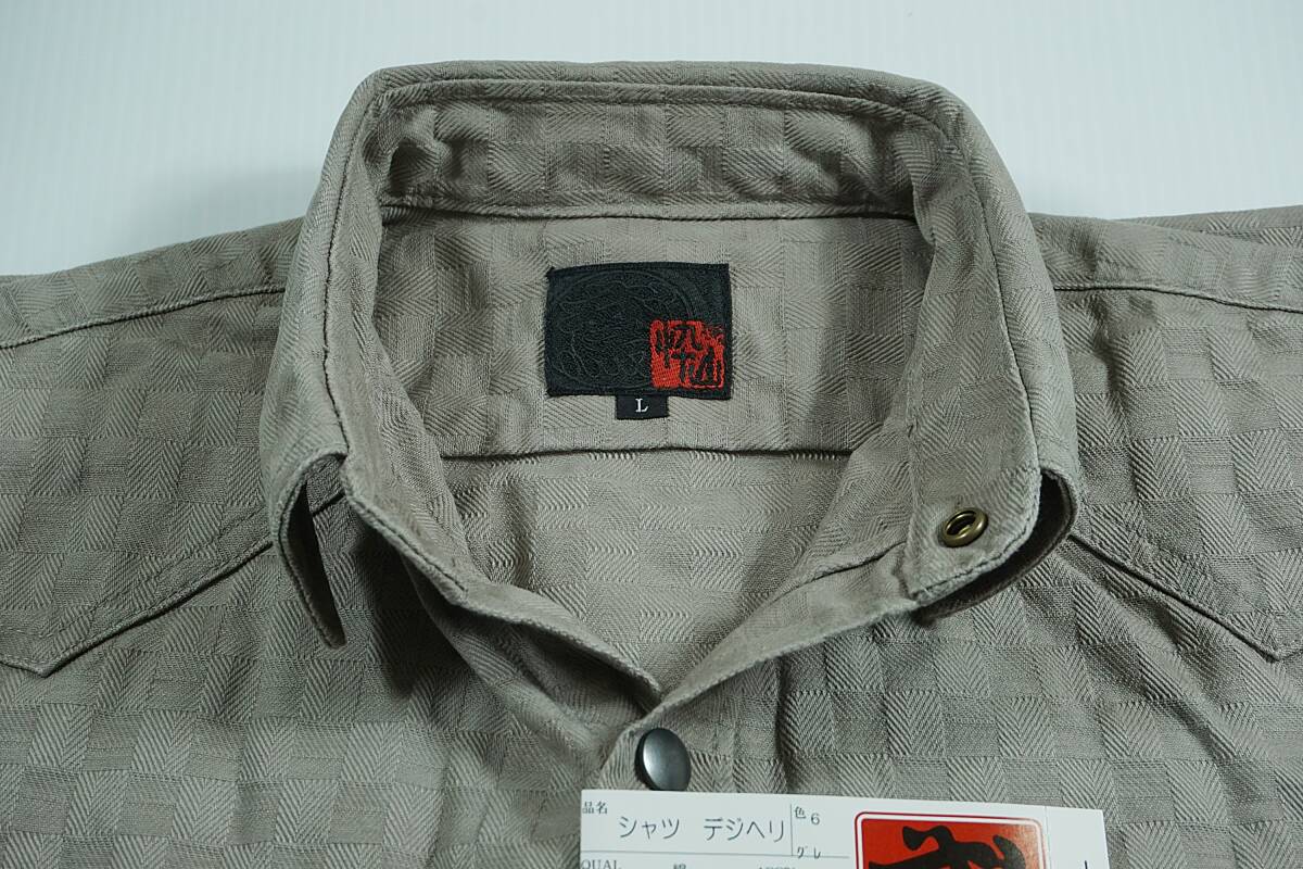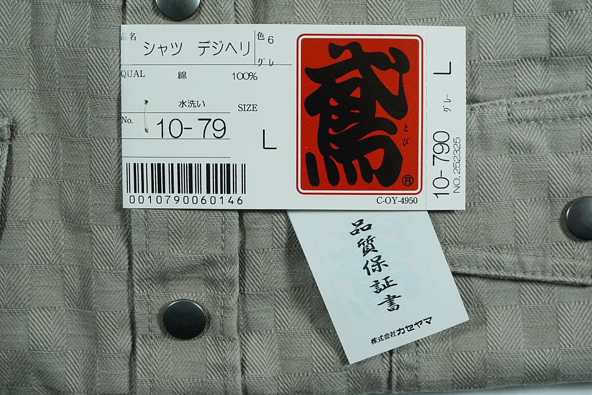 102408i1s カセヤマ 鳶シャツ デジヘリ Lサイズ グレー 日本製 高級鳶服 作業服 現品限 特価