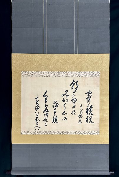c25H10【真作】糟谷磯丸「和歌」掛軸 絹本 肉筆 書 江戸時代後期の歌人 三河 愛知の人
