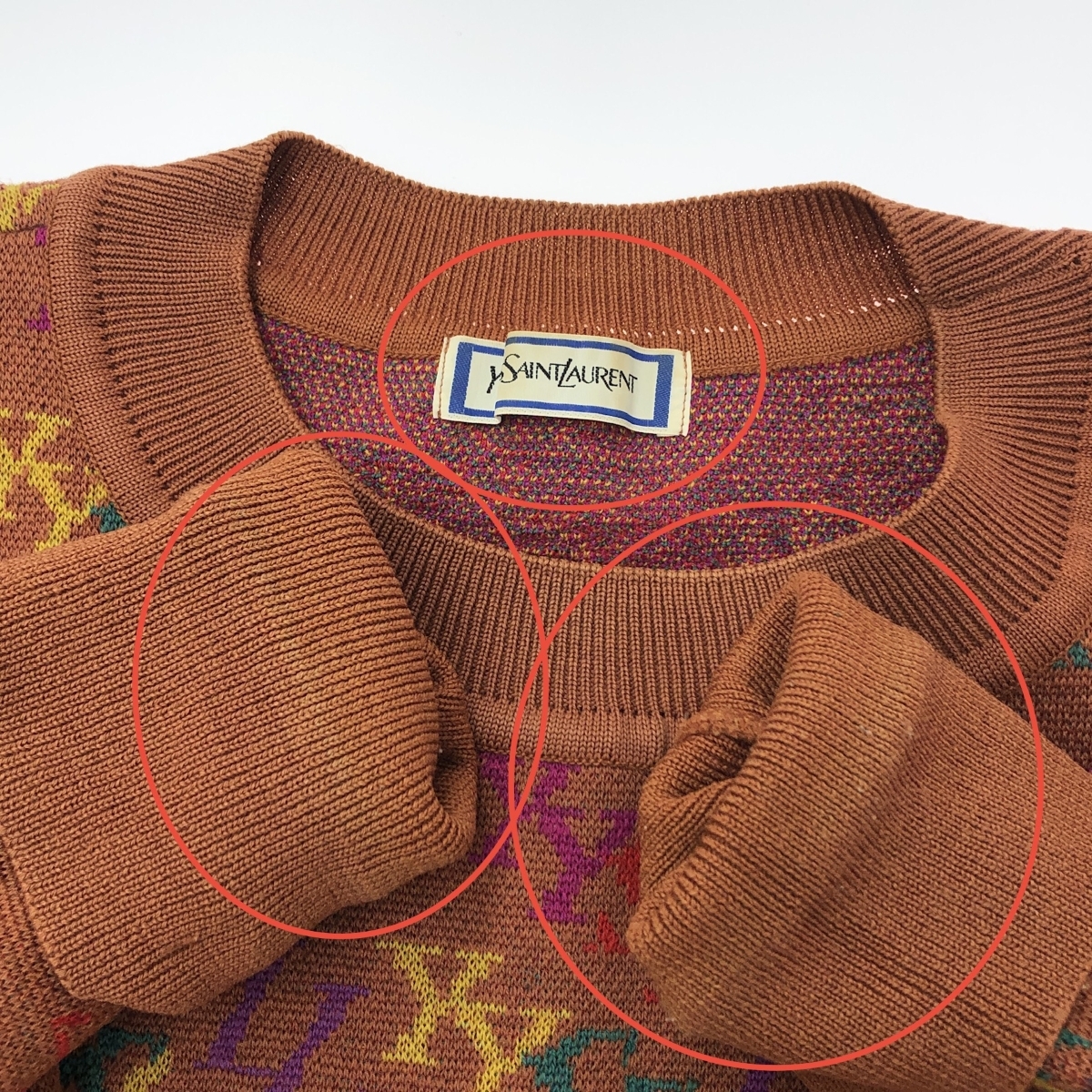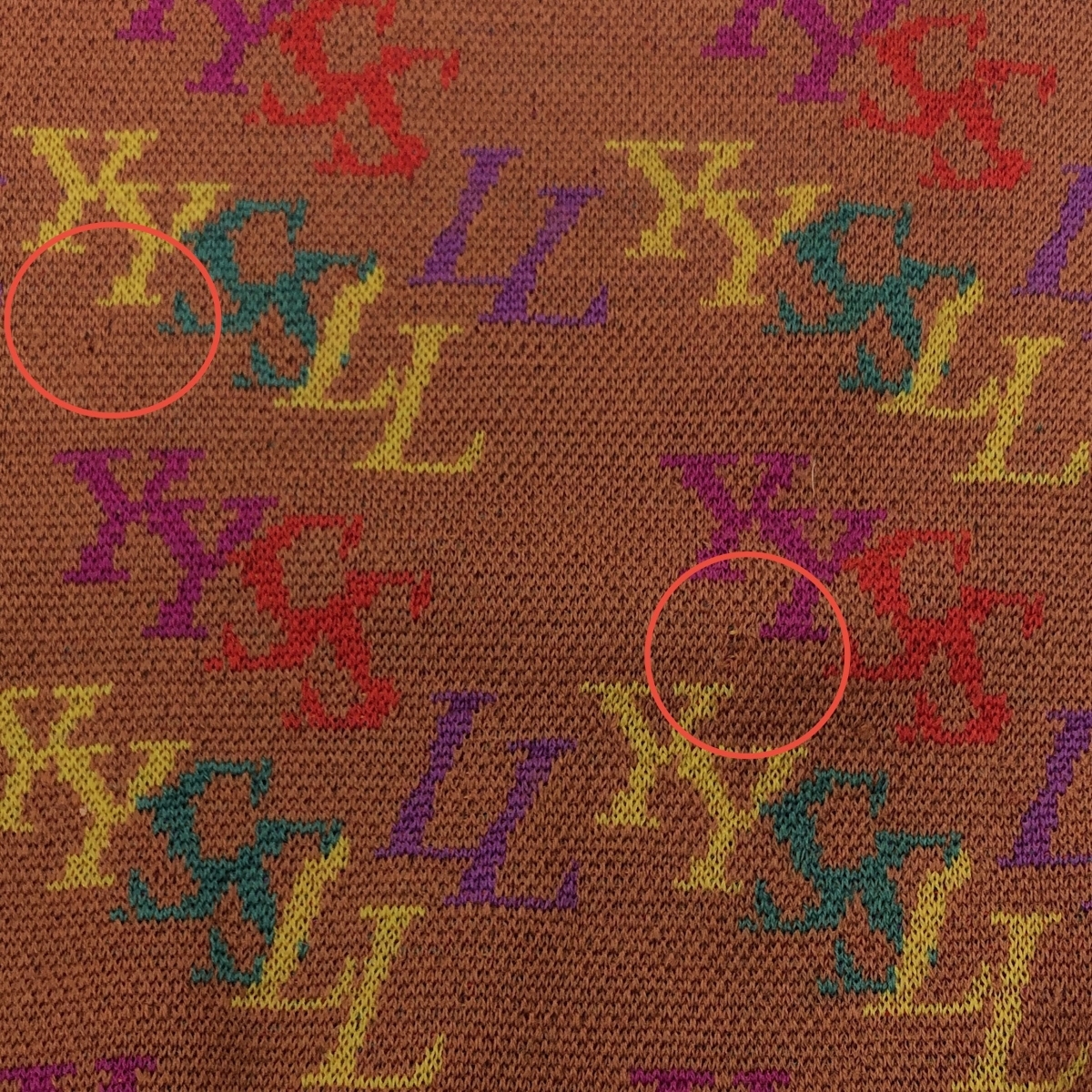 長袖ニット ロゴ総柄/ヴィンテージ ウール100% ※素材は画像の素材タグをご確認ください。画像にない場合は素材タグが無く素材不明となります。 |