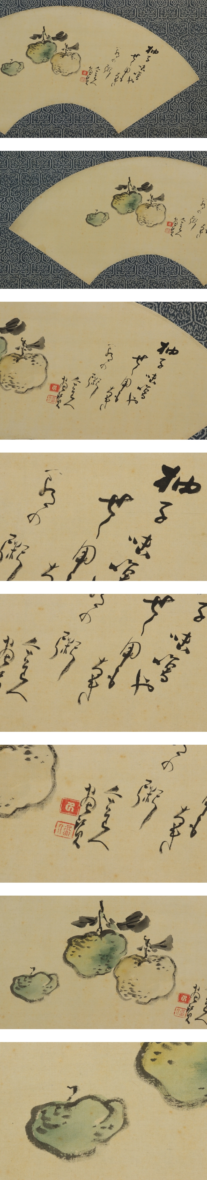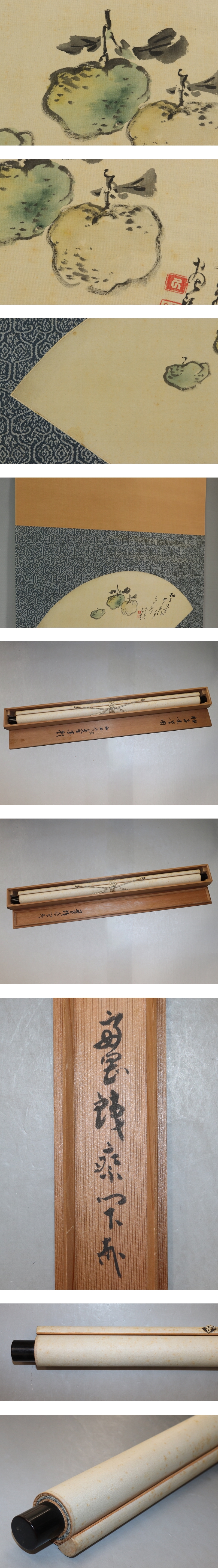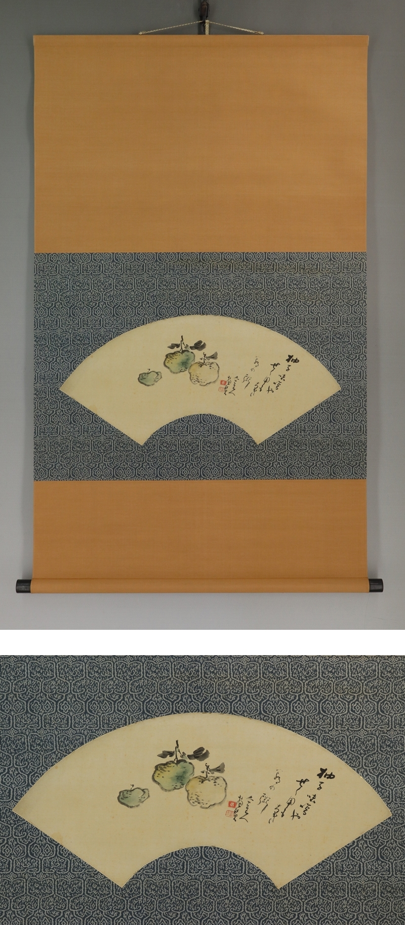 | №2205151【真作】山田介堂【扇面・柚子画賛】◆絹本◆識箱◆掛軸 | |
