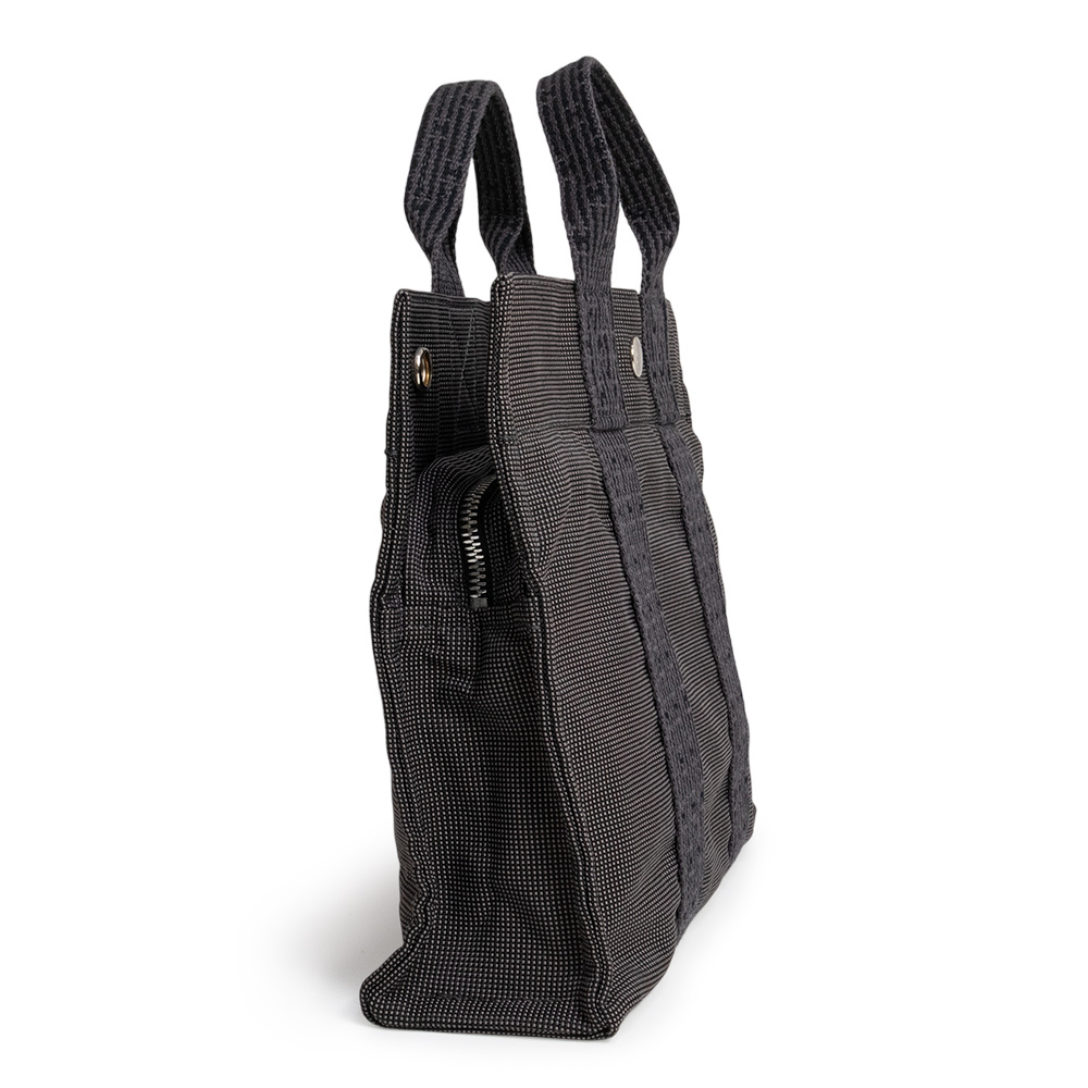 (中古)エルメス HERMES エールライン トート PM ハンドバッグ キャンバス グレー シルバー金具