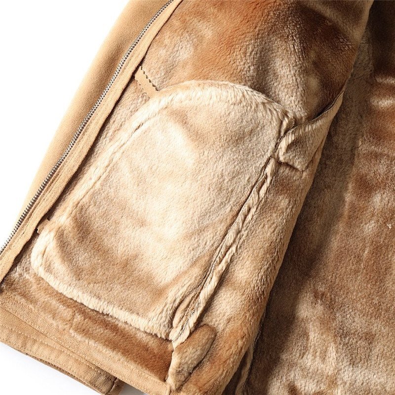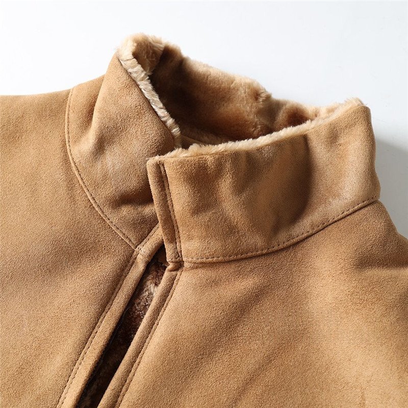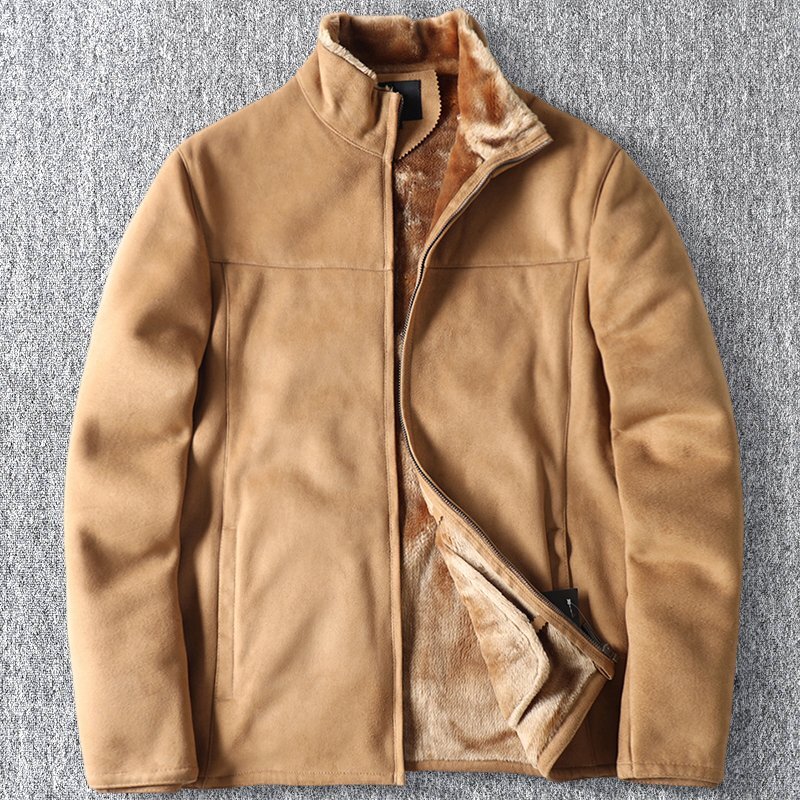 新品 北米高級 フェイクレザー ボアジャケット スエード生地 スタンドカラー 秋冬 極地防寒 厚手 デザイン メンズ 冬服 防風 保温 ブルゾン カーキ T8110-2XL
