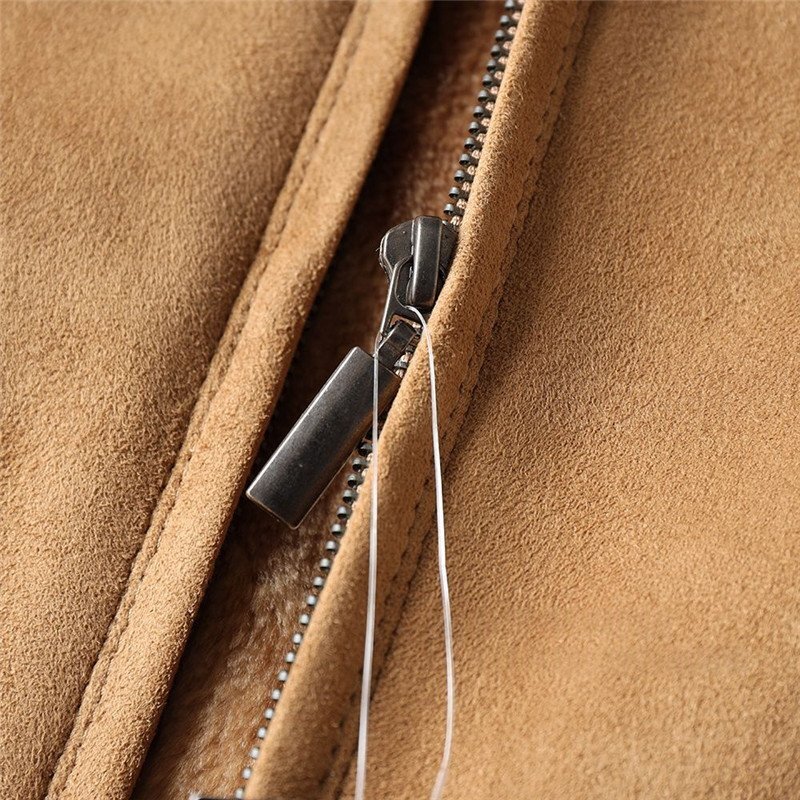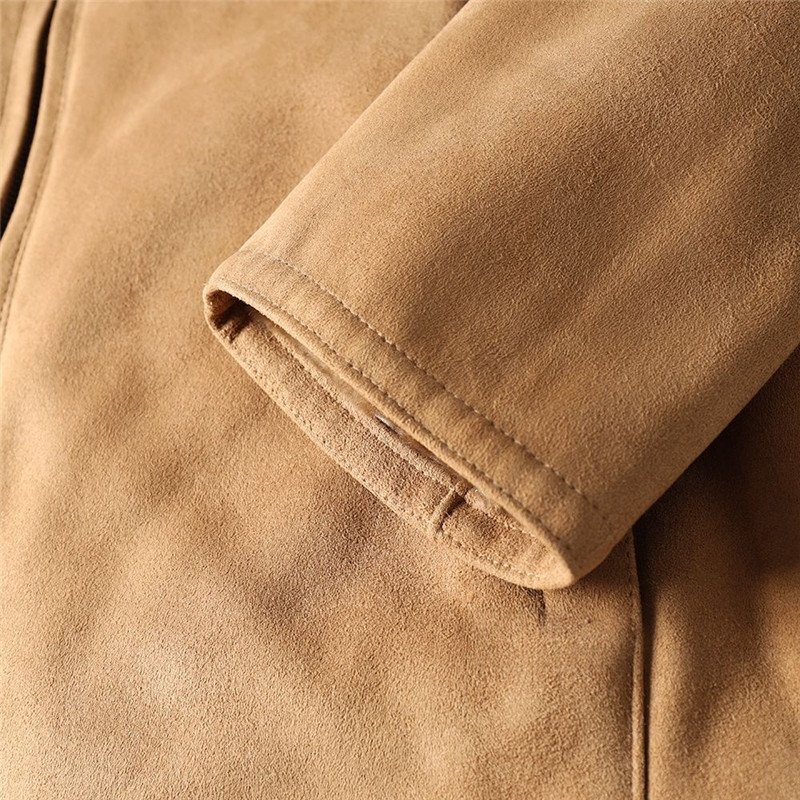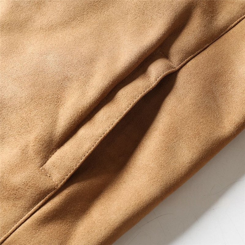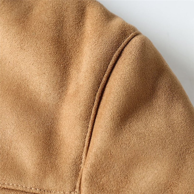 新品 北米高級 フェイクレザー ボアジャケット スエード スタンドカラー 秋冬 防寒 厚手 デザイン メンズ 保温 ブルゾン カーキ T8110-2XL