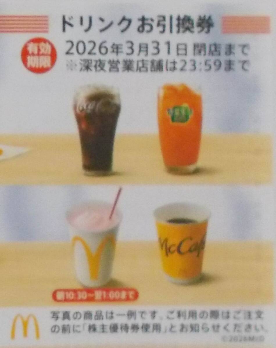 マクドナルド 株主優待券 ドリンクお引換券 10枚 2026年3月まで